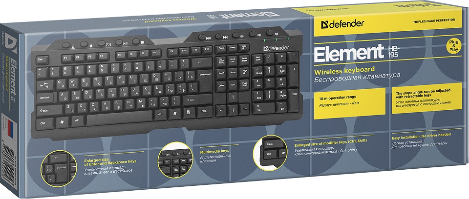 USB, беспроводная, радиус 10м, мембранная, 104+10доп мутильмедиа клавиш, питание 2хАА (в комплекте), черный
