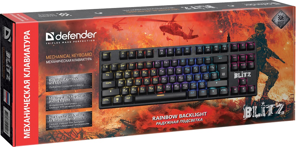 Клавиатура игровая механическая Defender Blitz GK-240L Rainbow (45240)