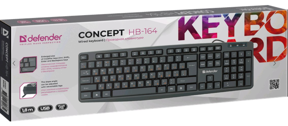 USB, проводная, мембранная, 104кн+FN, длина кабеля 1,8м, 12х2.3х43см, черный