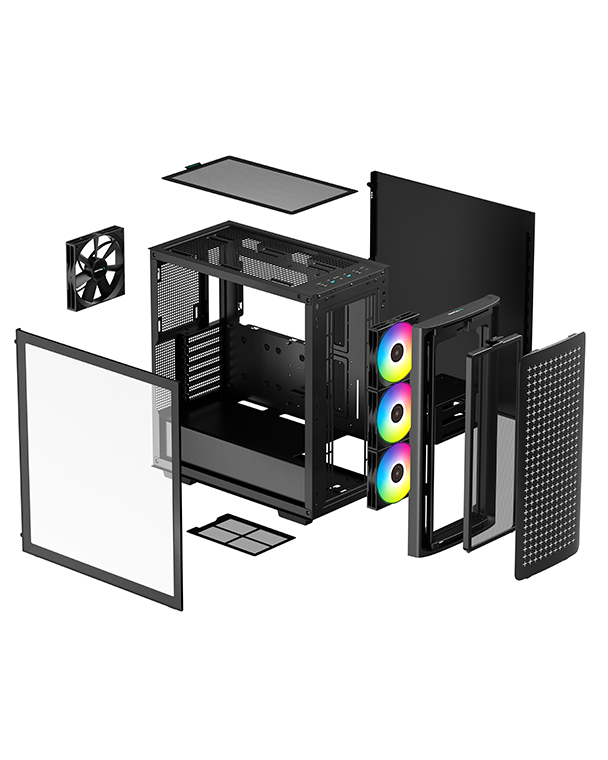 E-ATX, Cooler height 175mm, VGA 380mm, PSU is down position(max length: 160mm); 3,5*2, 2,5*2, USB 3.0*2, Audio*1, TypeC*1PCI *7, Include 3x120mm Fans Rear, 1x140mm Fan Rear, 471*230*456mm, 8kg, Tempered Glass, SPCC+PLASTIC (ABS)