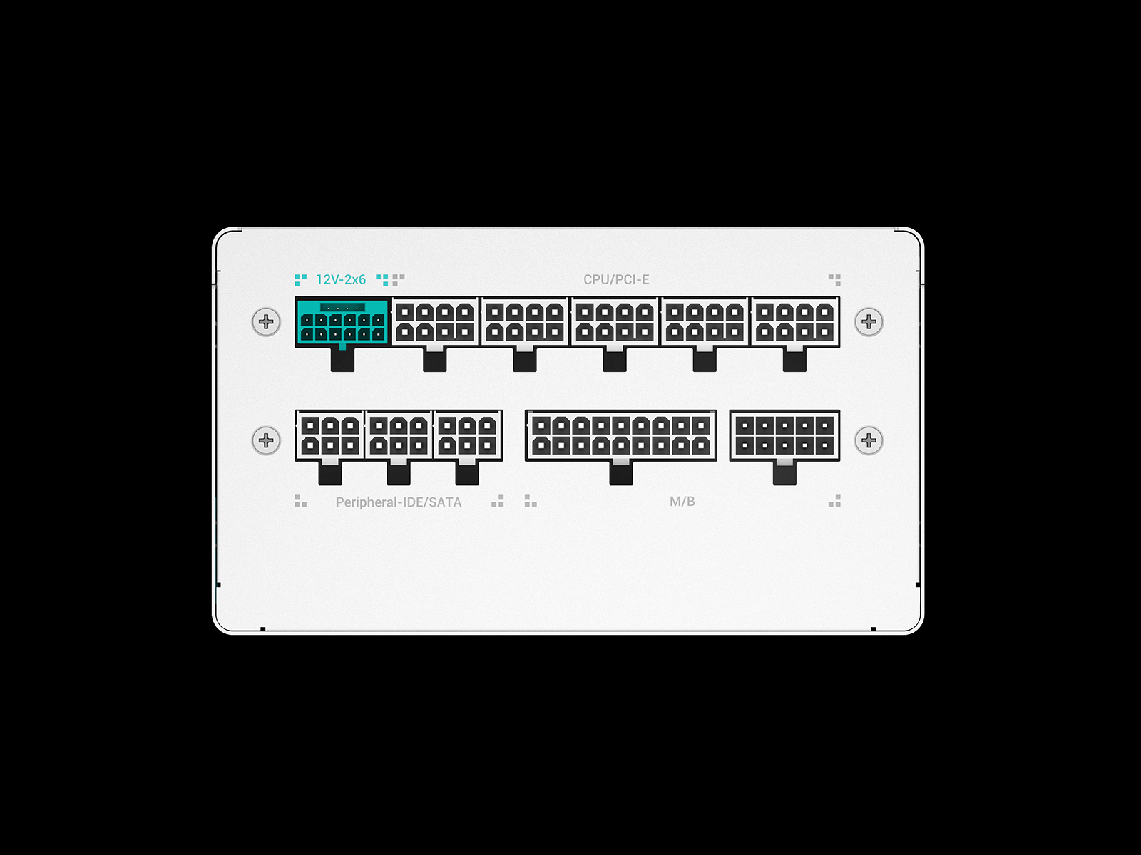 1 x 24 PIN (20+4) (600mm), 2 x SATA (450/120/120/120+Molex 120mm), 1 x 8PIN PCIe (6+2) (600mm), 1 x 8PIN PCIe (6+2) (600/120mm), 2 x 8PIN EPS (4+4) (700mm), 1 x 12VHPWR (16Pin) (650mm), 150x140x86mm