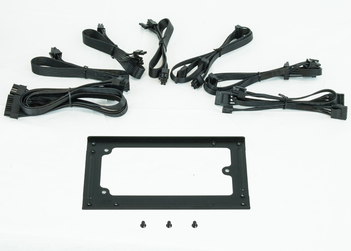 1 x 24 PIN (20+4) (450mm), 6 x SATA (450/150/150mm), 3 x MOLEX (450/150/150/150mm), 2 x 8PIN PCIe (6+2) (450mm), 1 x 8PIN EPS (4+4) (450mm), 1 x FLOPPY (Molex), 100mm x 125mm x 64mm