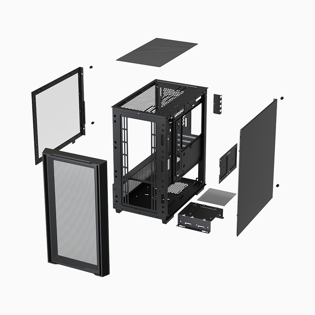 Micro-ATX, Mini-ITX; L375xW216xH405mm (Д*Ш*В); CPU Cooler - upto 175mm, VGA - upto 305mm;2-USB 2.0;1-USB3.0; AIO TOP: 240mm/280mm
