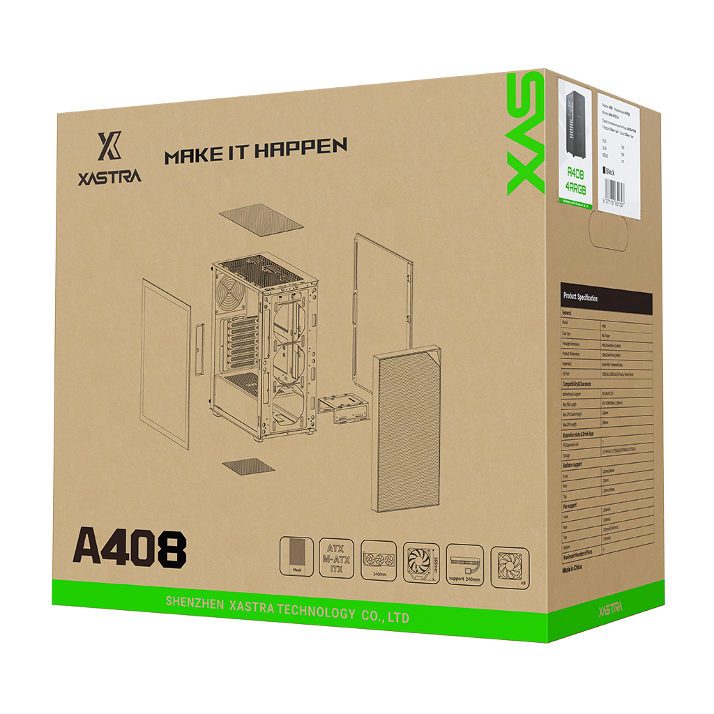 ATX. Micro-ATX, Mini-ITX; 385*218*447 (Д*Ш*В); CPU Cooler - upto 165mm, VGA - upto 340mm;2-USB 2.0;1-USB3.0; AIO Top 240; Front: 360mm