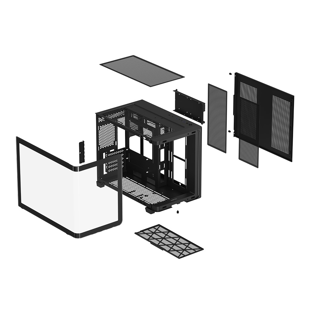 mATX, 460(д)*285(ш)*368mm(в); CPU Cooler - upto 160mm, VGA - upto 445mm;1-USB 3.0;1-USB 2.0, 1-Type-C AIO- Top:360mm/280mm