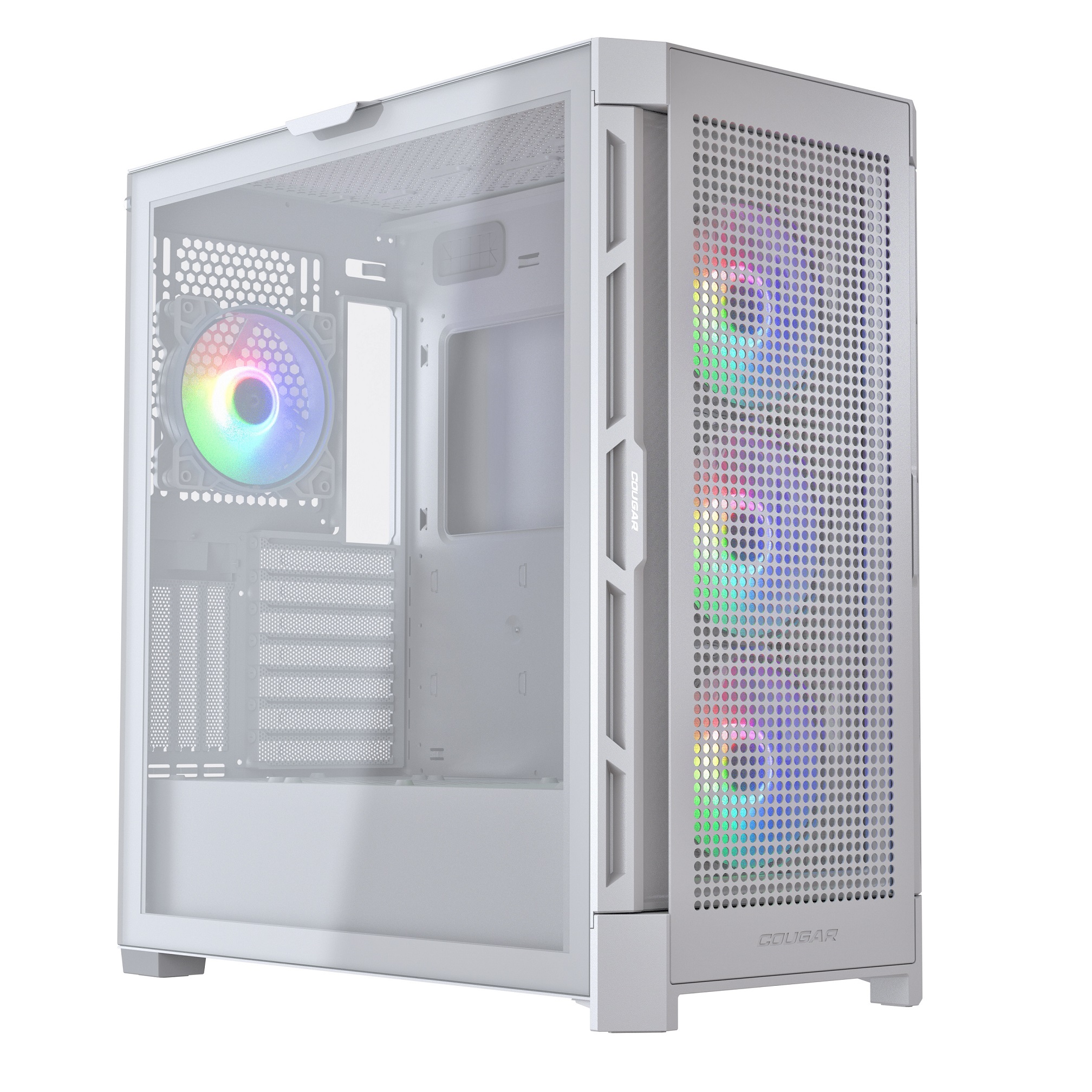 Корпус Cougar Airface RGB White, 2х140mm + 1x120mm ARGB Fan, ARGB Fan Hub, без БП, белый, ATX / CGR-5ZD1W-AIR-RGBРазмер (ШхВхГ): 230x491x386mm; 165мм PSU; 330мм VGA; 190мм CPU; Слоты: 3,5х2, 2,5х2. Вент-ры: Rear: 1х120мм (inc.), Front: 2*140mm; I/O Panel: USB3.0 x 2 / USB2.0 x 1, 4 Pole Headset Audio Jack x 1, Reset Buttonиндекс: PC_Airface_RGB_White P/n: CGR-5ZD1W-AIR-RGB