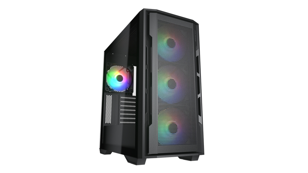 Корпус Cougar Airface RGB Black, 2х140mm + 1x120mm ARGB Fan, ARGB Fan Hub, без БП, черный, ATX / CGR-5ZD1B-AIR-RGBРазмер (ШхВхГ): 230x491x386mm; 165мм PSU; 330мм VGA; 190мм CPU; Слоты: 3,5х2, 2,5х2. Вент-ры: Rear: 1х120мм (inc.), Front: 2*140mm; I/O Panel: USB3.0 x 2 / USB2.0 x 1, 4 Pole Headset Audio Jack x 1, Reset Buttonиндекс: PC_Airface_RGB P/n: CGR-5ZD1B-AIR-RGB