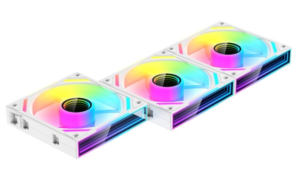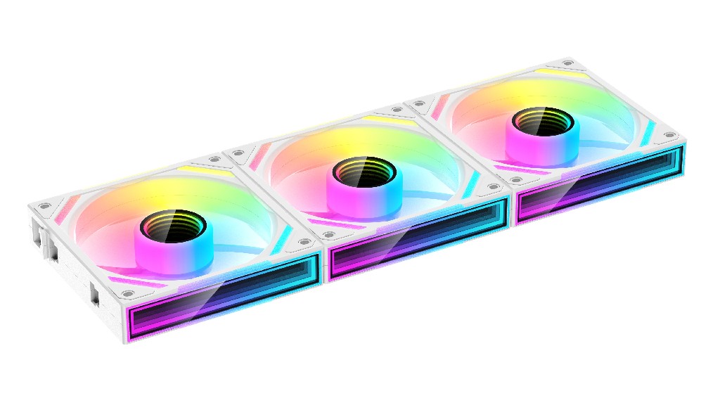 3 white fan +2 pcs adapter cables; соединяются в цепочку из трех вентиляторов. 70 CFM, 29.6 d(B)A