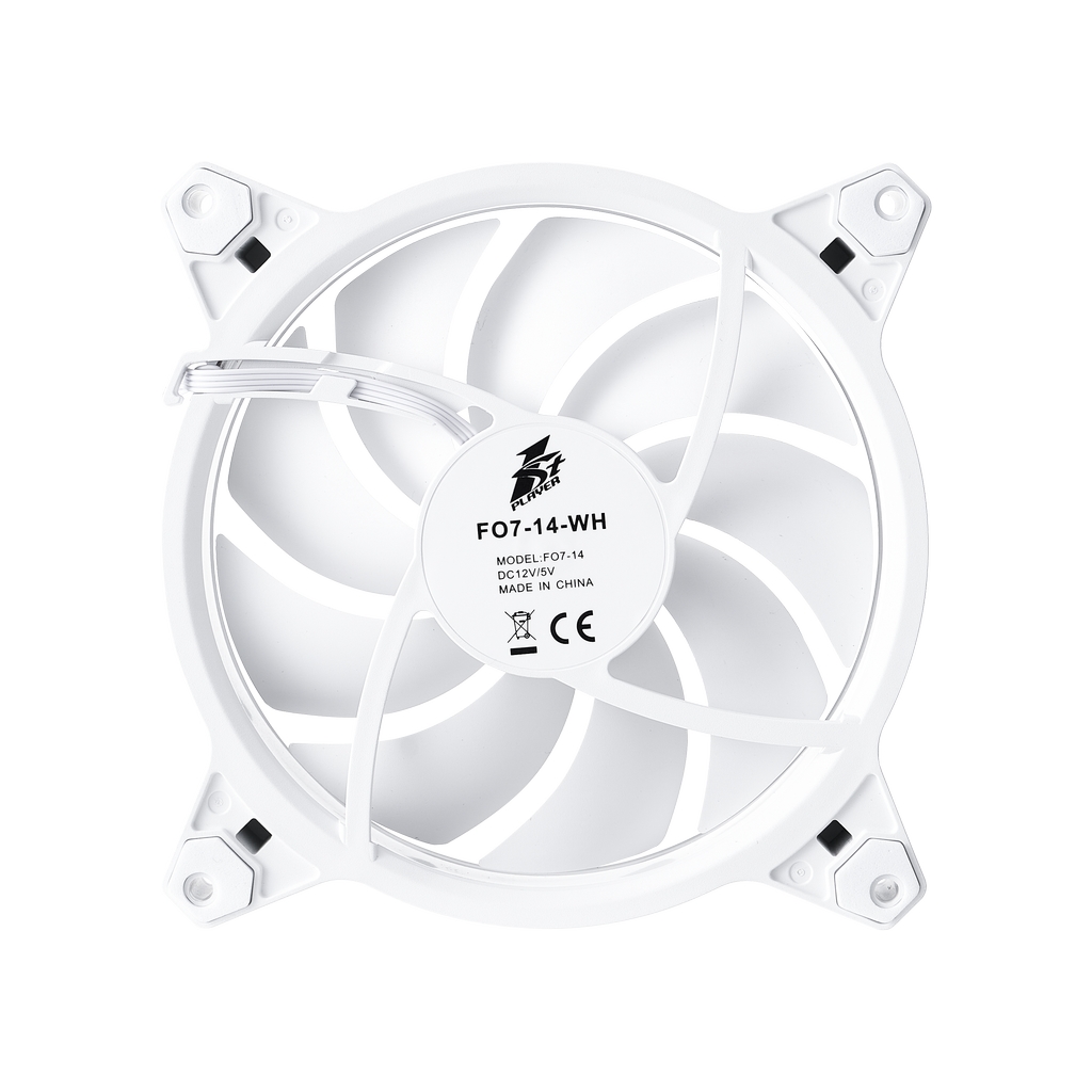 Вентилятор 1STPLAYER FO7R-14 White / 140mm Reverse ARGB 3pin 5V PWM 4pin 12V 700-1800rpm 76.25cfm 36.64dBA / FO7R-14-WH / BULK