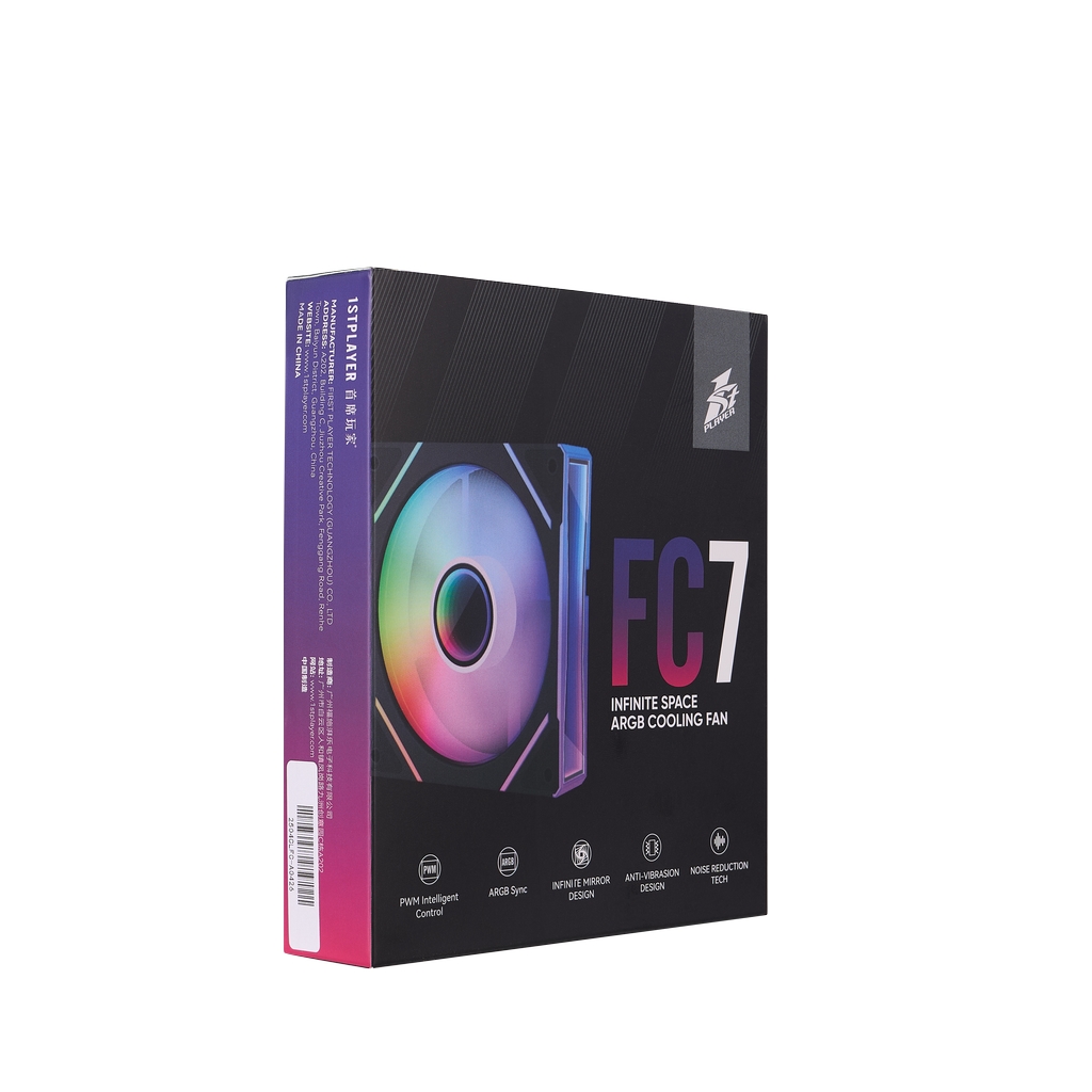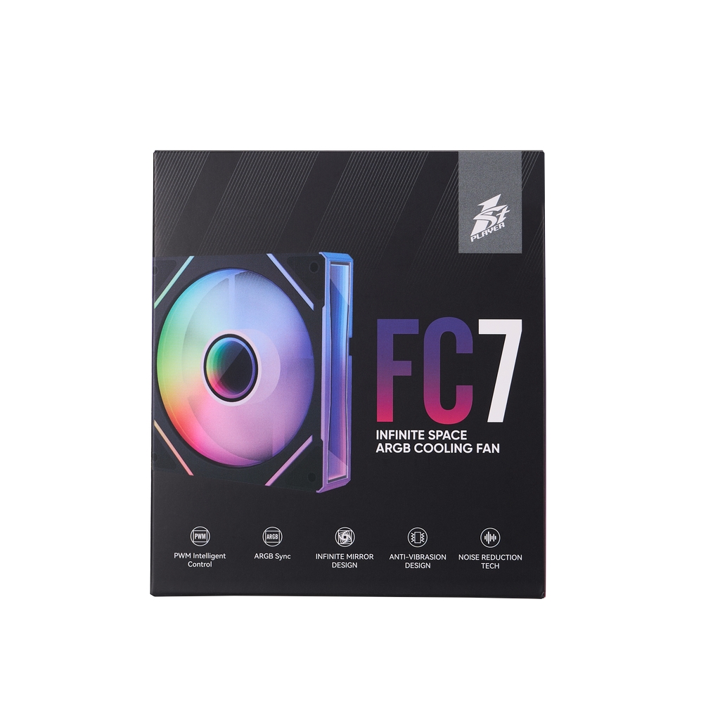 Вентилятор 1STPLAYER FC7 Black / 120mm ARGB 3pin 5V PWM 4pin 12V 600-1800rpm 47.65cfm 32.2dBA / FC7-BK-1IN1