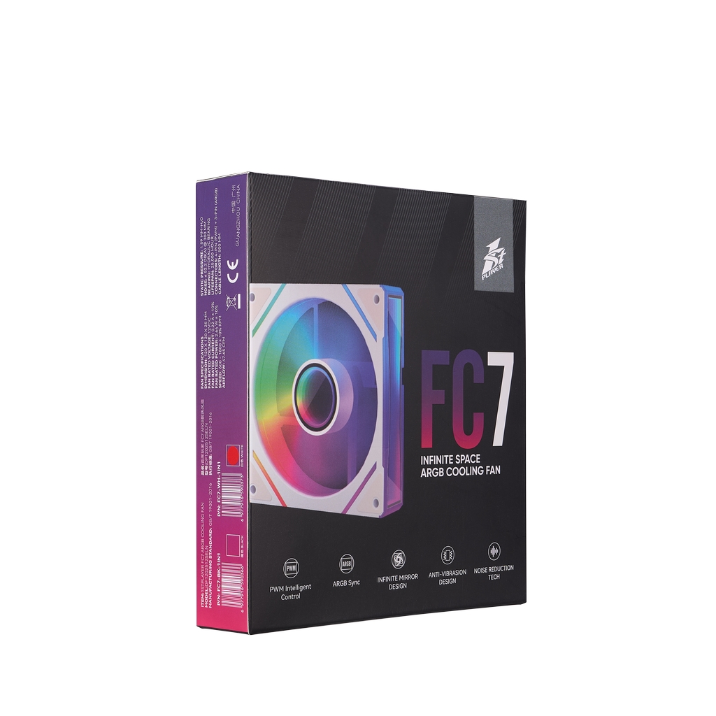 Вентилятор 1STPLAYER FC7 White / 120mm ARGB 3pin 5V PWM 4pin 12V 600-1800rpm 47.65cfm 32.2dBA / FC7-WH-1IN1