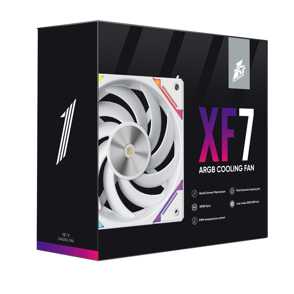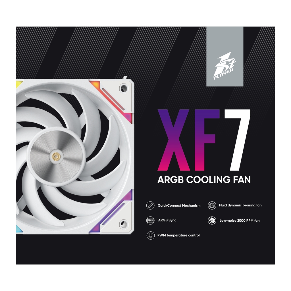 Комплект вентиляторов (3 шт.) 1STPLAYER XF7 White / 120mm ARGB 3pin 5V PWM 4pin 12V 600-2000rpm 56.8cfm 33.12dBA / XF7-WH-3IN1