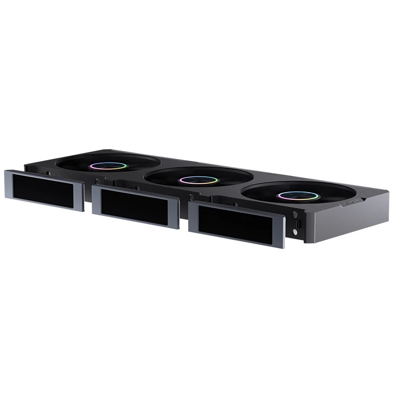 6.12W+2.4W, 700-2400 об/мин, 21,46-62,4CFM, 21.3-37.3dBa, давление: 0.49-2.46 mmH2O, PWM 4PIN / ARGB 3PIN /LCD USB, 363,8mm(L)*130mm(W)*28mm(H), Hydraulic Bearing