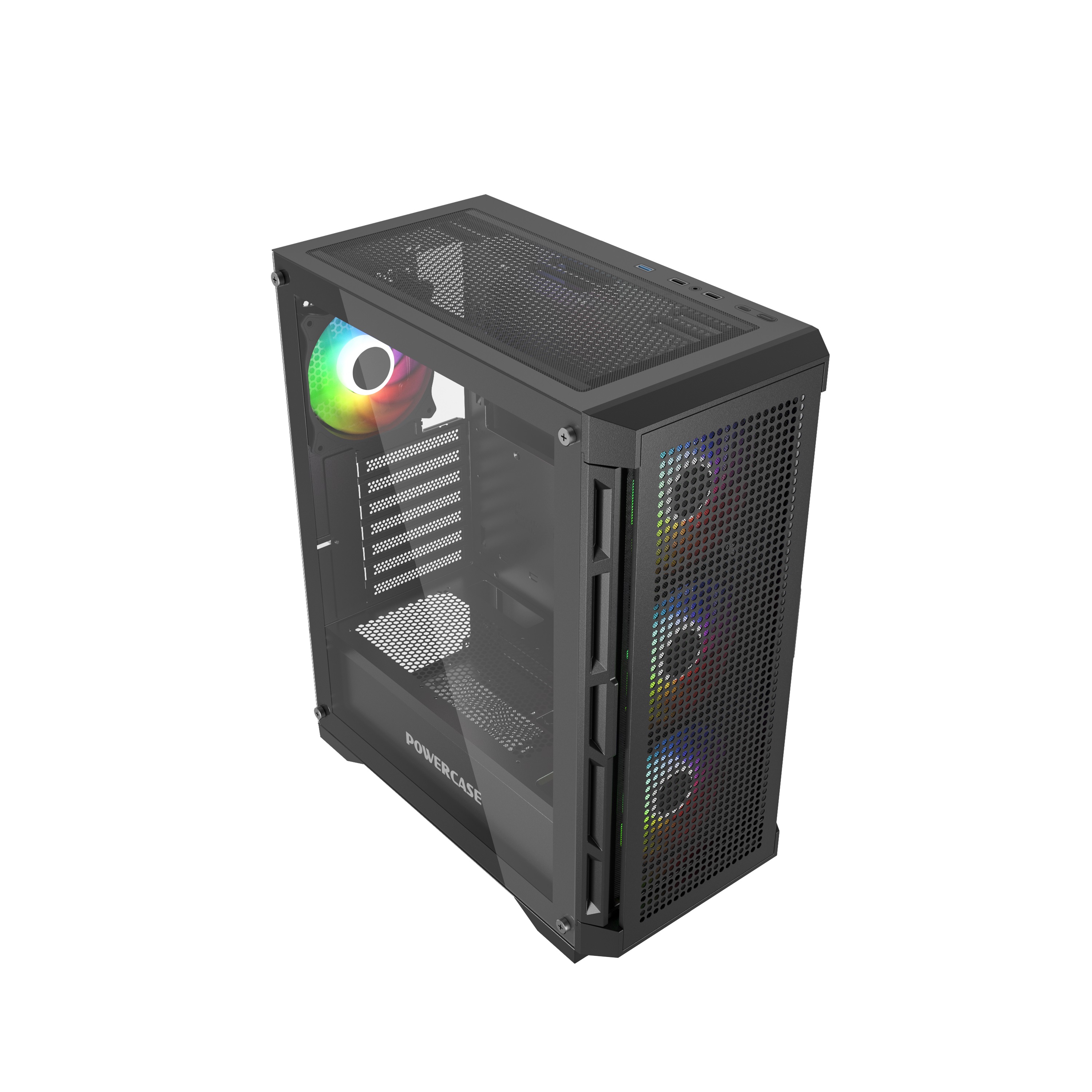 Контроллер необходимо подключить в PWM разъему на MB. 4*120mm ARGB Fans inc., VGA 320mm (with fans on front), CPU 155mm (Max.), Water cooler: 360mm front, 3.5''HDD x 2, 2.5''SSD x 2, USB3.0 x1+USB2.0 x2, HD Audio
