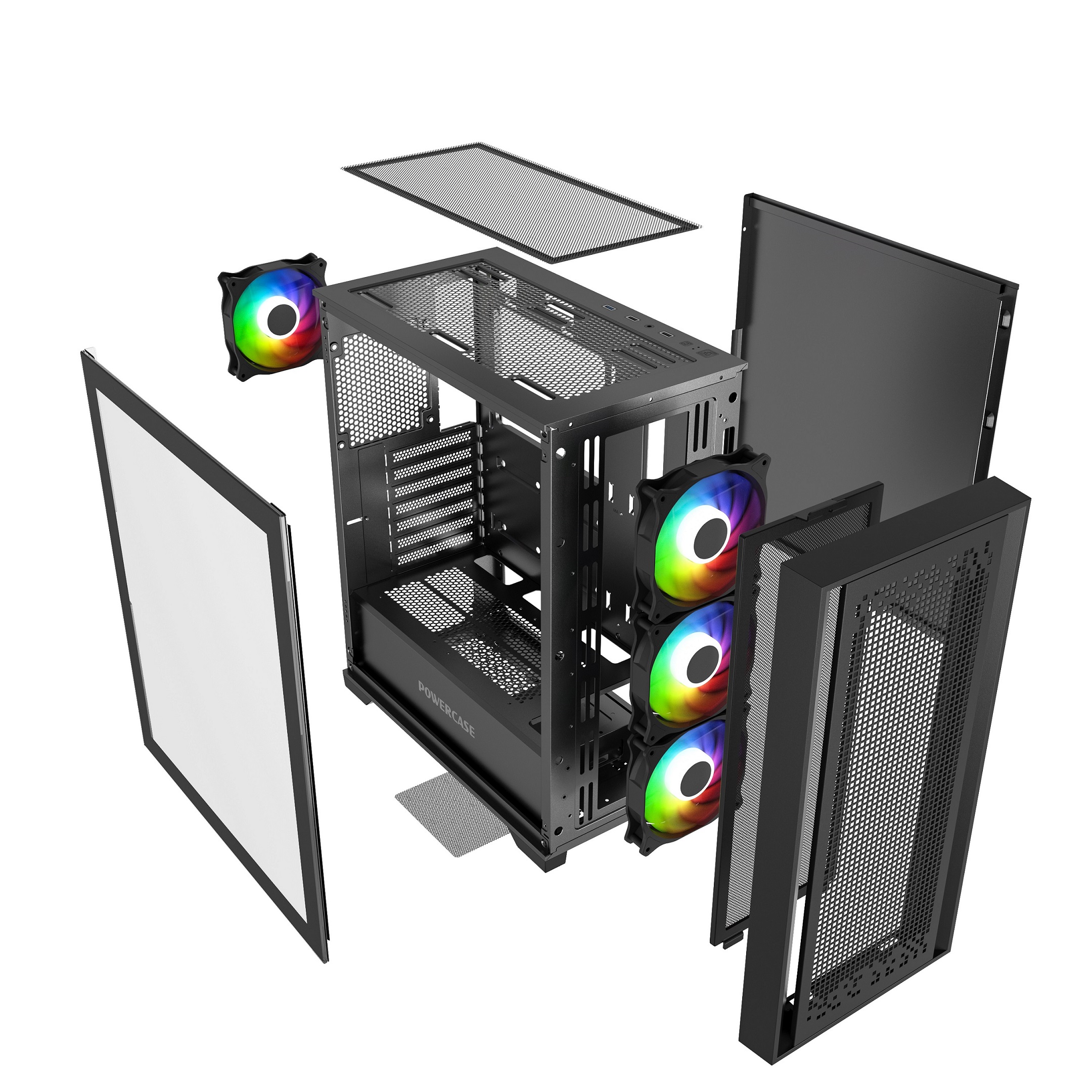 Контроллер необходимо подключить в PWM разъему на MB. 4*120mm ARGB Fans inc., VGA 330mm (with fans on front), CPU 168mm (Max.), Water cooler: 360mm front, 3.5''HDD x 2, 2.5''SSD x 2, USB3.0 x1+USB2.0 x2, HD Audio
