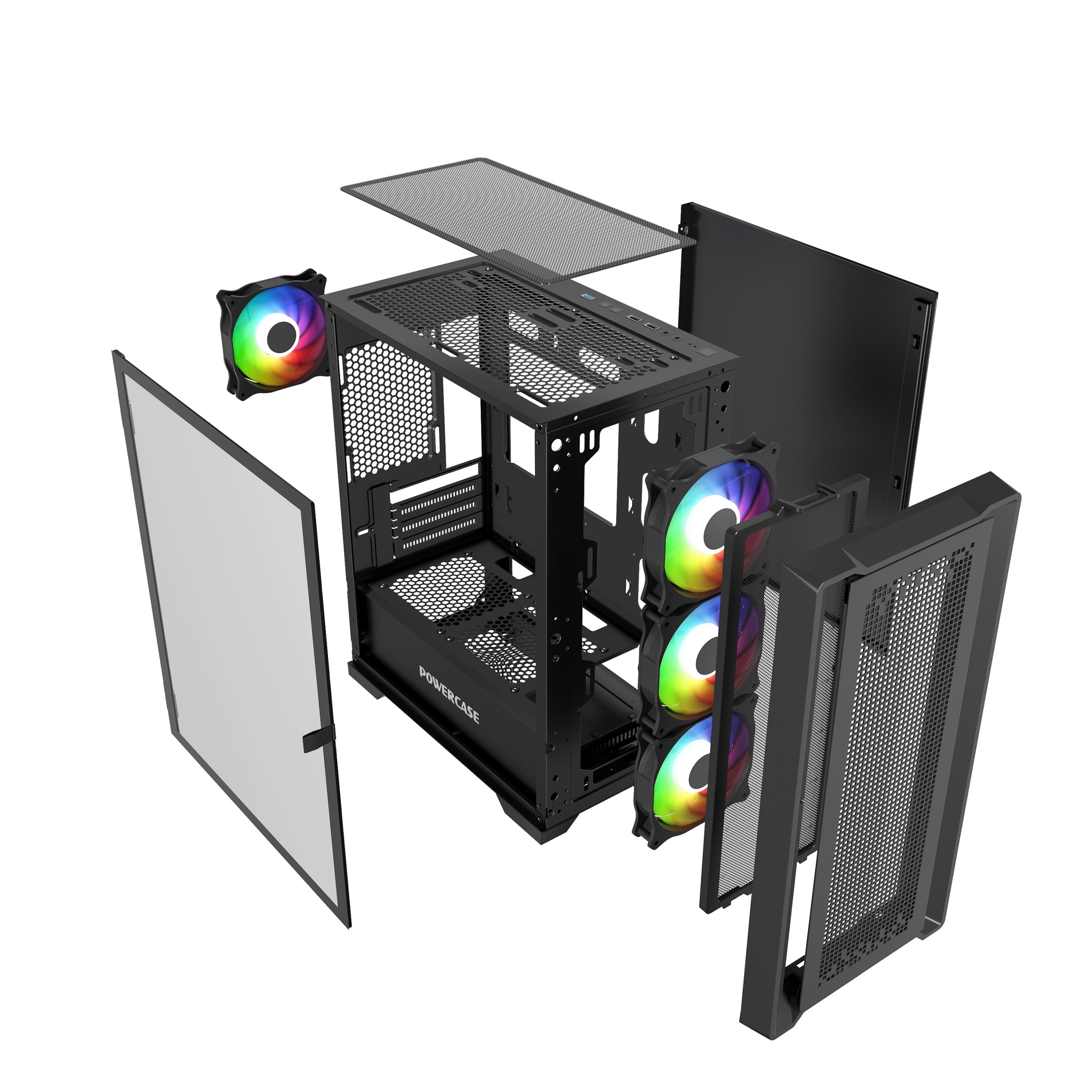 Контроллер необходимо подключить в PWM разъему на MB. 4*120mm ARGB Fans inc., VGA 330mm (with fans on front), CPU 168mm (Max.), Water cooler: 280/360mm top/ front, 3.5''HDD x 2, 2.5''SSD x 2, USB3.0 x1+USB2.0 x2, HD Audio