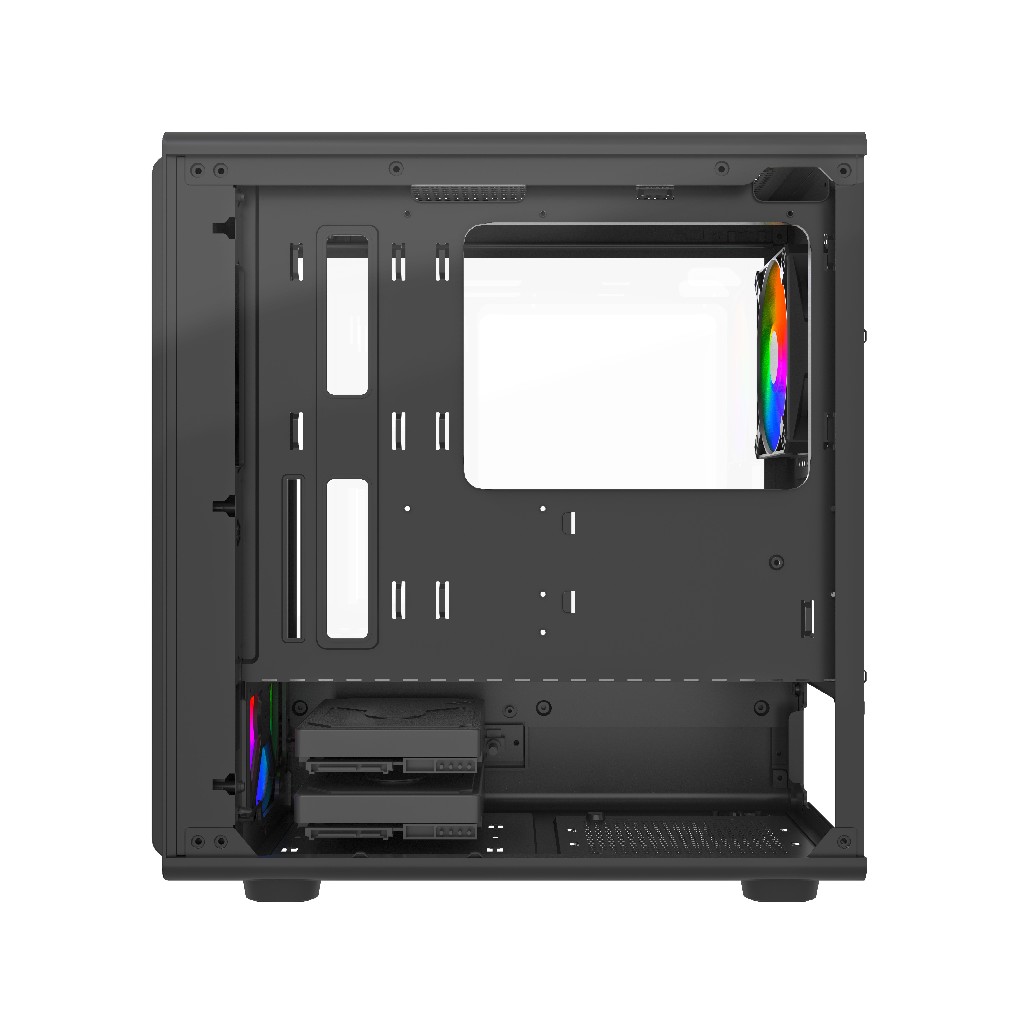 Для работы подсветки необходима материнская плата с поддержкой ARGB. Размеры Ш*В*Г: 220*408*370мм, SPCC 0.45mm, VGA 330mm, CPU 175mm (Max.) 3.5''HDD x 2, 2.5''SSD x 1, USB3.0 x1+USB2.0 x1, HD Audio. 4x 120mm ARGB PWM Fans