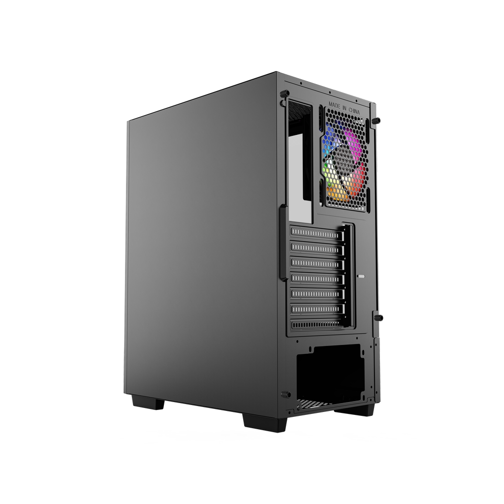 Размеры (ШхВхГ): 216x465x365mm, SPCC 0.45mm.CPU кулер 175мм (макс),VGA 305mm, PSU up to ***mm. Слоты: 3,5"х2, 2,5"х2, 7xPCI. Охлаждение: Front: 2х140мм ARGB fans (inc.). Rear:1х120мм ARGB fan (inc.). I/O Panel: USB3.0 x 1 / USB2.0 x 2 , HD audio.
