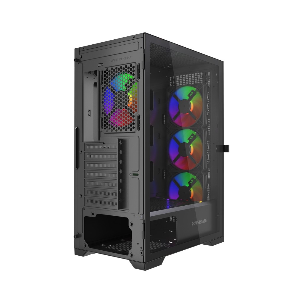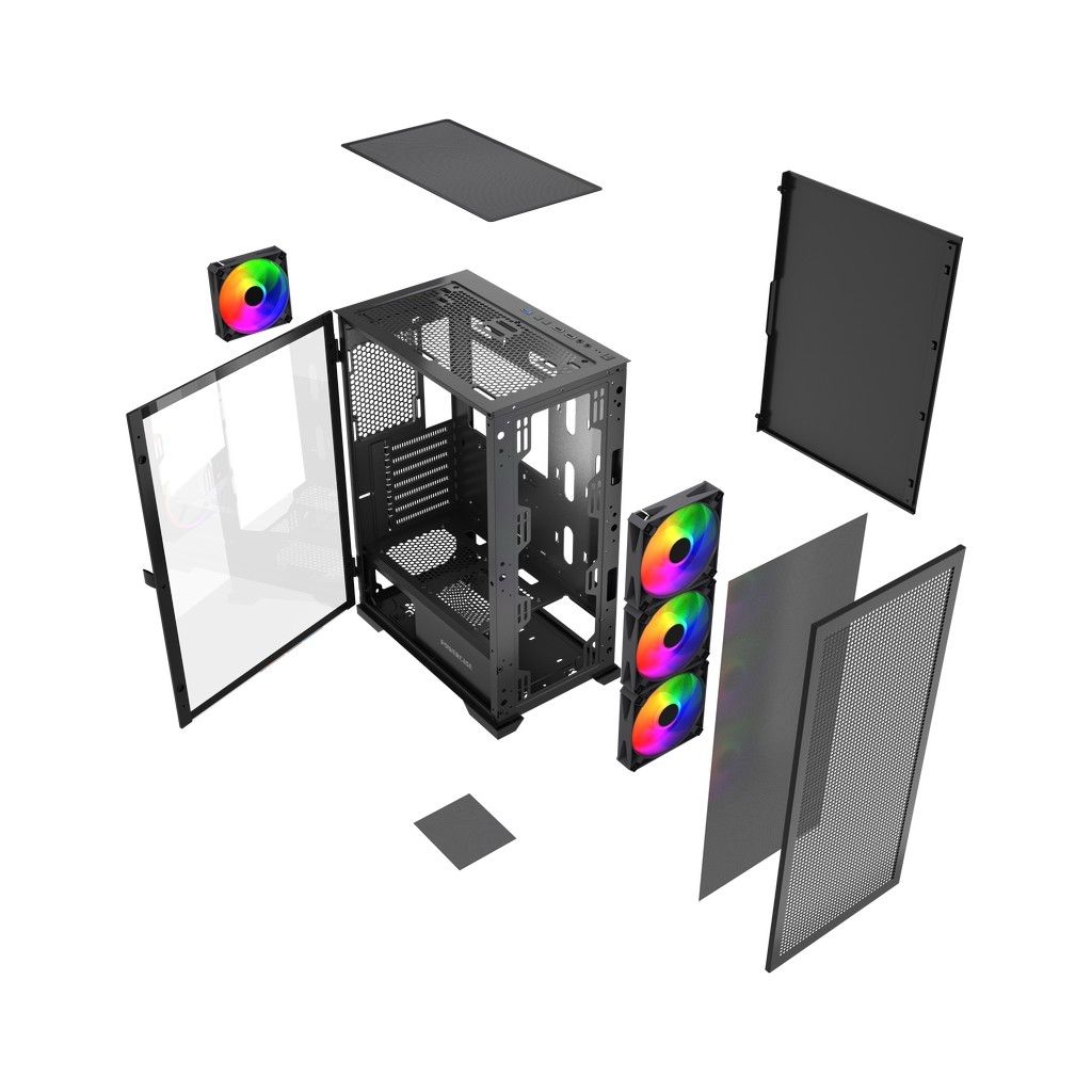 Размеры (ШхВхГ): 210x480x376mm, SPCC 0.5mm.CPU кулер 165мм (макс),VGA 285mm, PSU up to 160mm. Слоты: 3,5"х1, 2,5"х1, 7xPCI. Охлаждение: Front: 3х120мм ARGB fans (inc.). Rear:1х120мм ARGB fan (inc.). I/O Panel: USB3.0 x 1 / USB2.0 x 1 , HD audio.