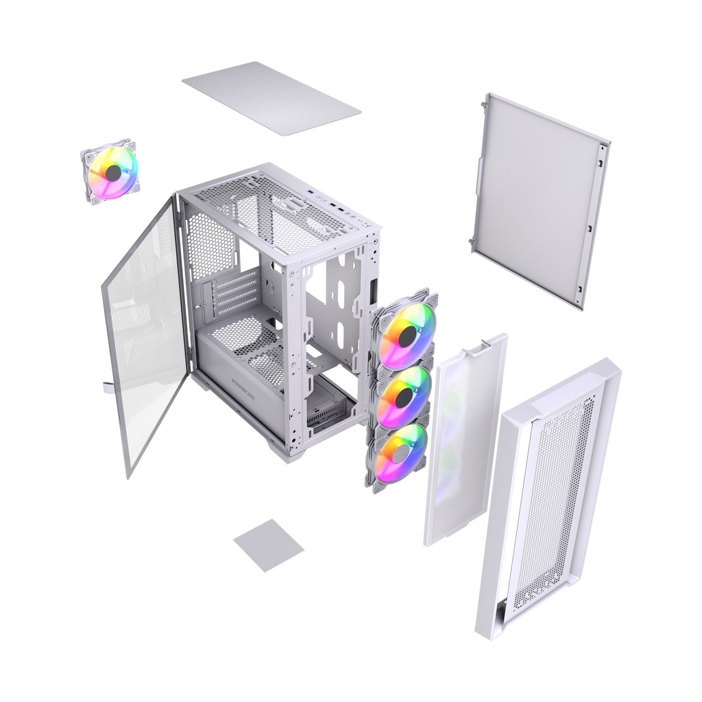 4*120mm ARGB PWM Fans inc., VGA 305mm (with fans on front), CPU 160mm (Max.), Water cooler: 240mm front, 3.5''HDD x 2, 2.5''SSD x 1, USB3.0 x1+USB2.0 x2, HD Audio