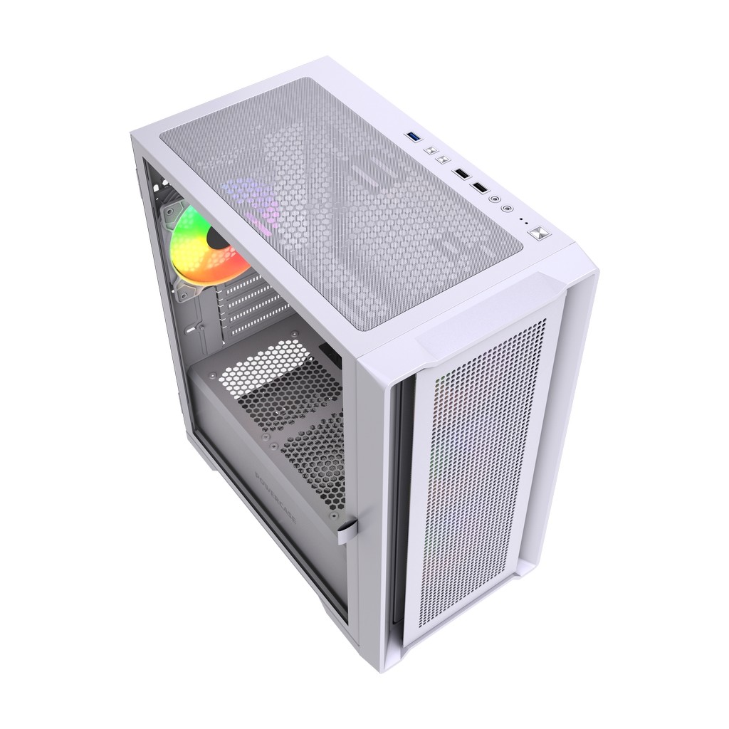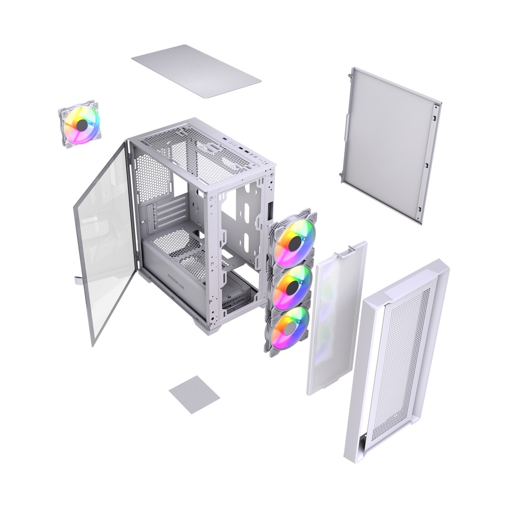 4*120mm ARGB Fans inc., VGA 305mm (with fans on front), CPU 160mm (Max.), Water cooler: 240mm top, 3.5''HDD x 2, 2.5''SSD x 1, USB3.0 x1+USB2.0 x2, HD Audio