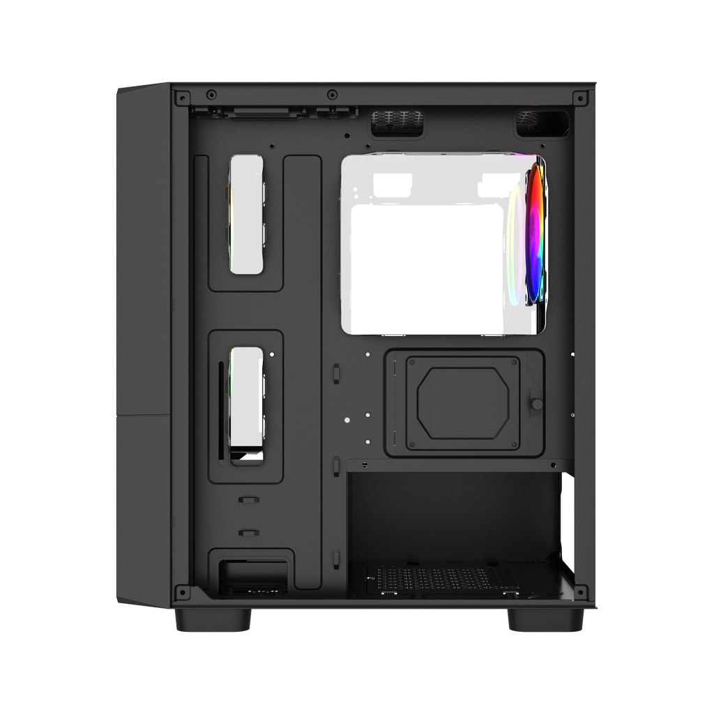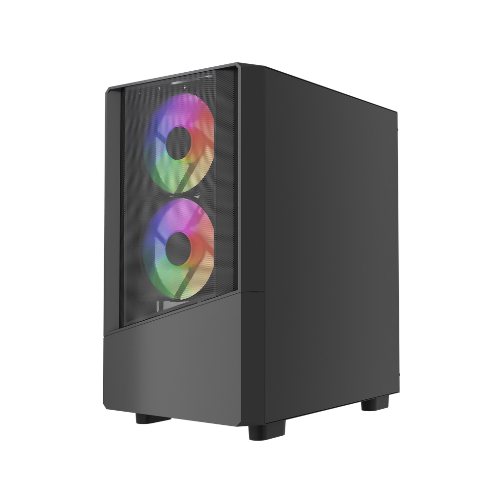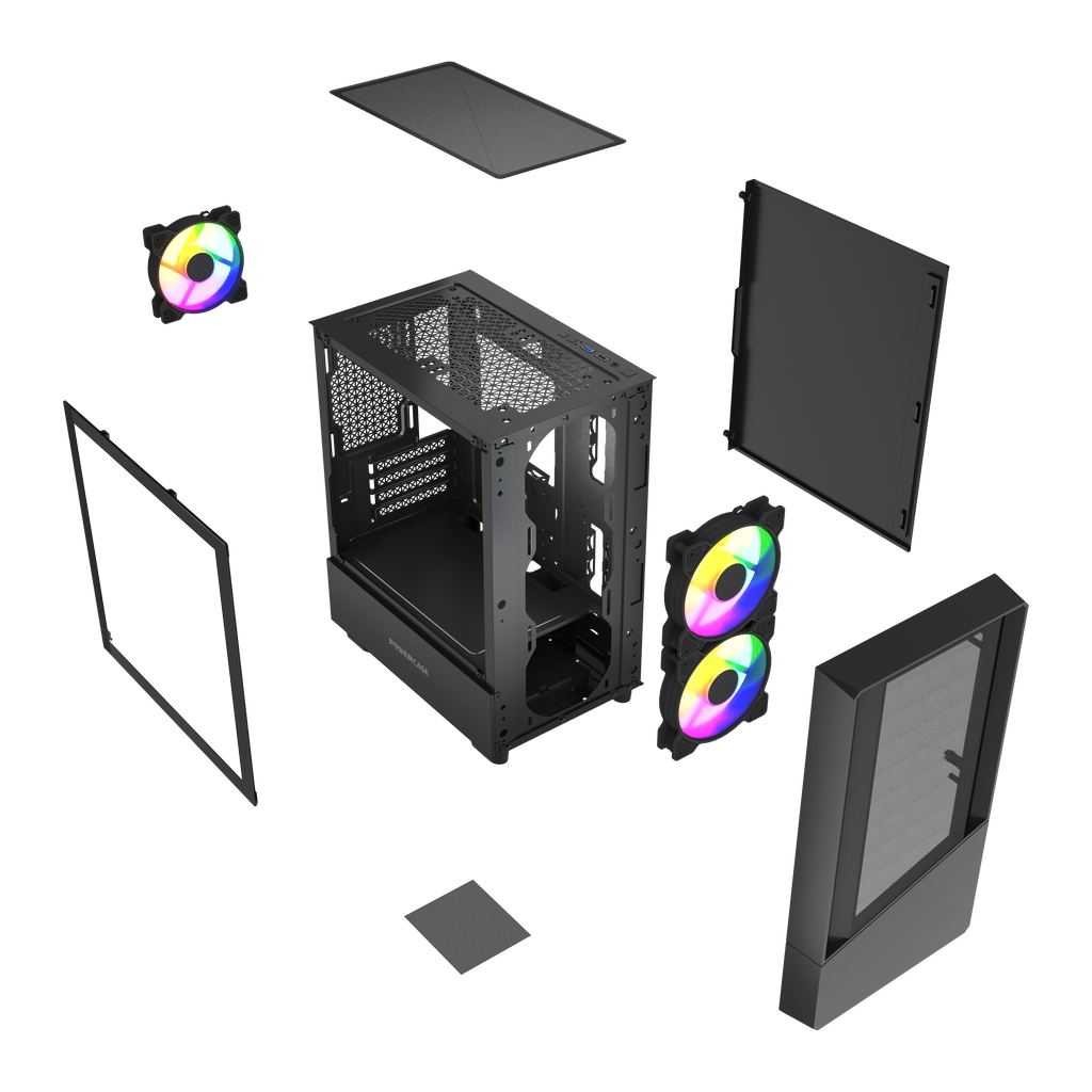 Размеры (ШхВхГ): 210 x 398 x 354, SPCC 0.4mm.CPU кулер 165мм (макс),VGA 285mm, PSU 160mm. Слоты: 3,5"х1, 2,5"х1, 4xPCI. Охлад: Front: 2х120мм FRGB fans (inc.). Top: 2х120мм, Rear: 1х120мм FRGB fan (inc.). I/O Panel: USB3.0 x 1 / USB2.0 x 2 , HD audio.