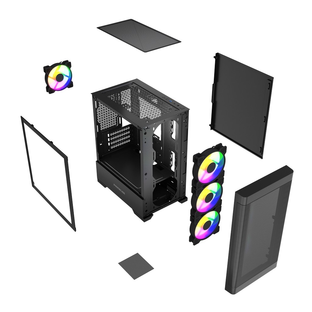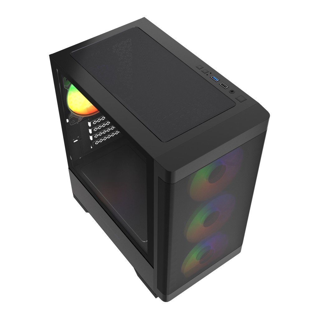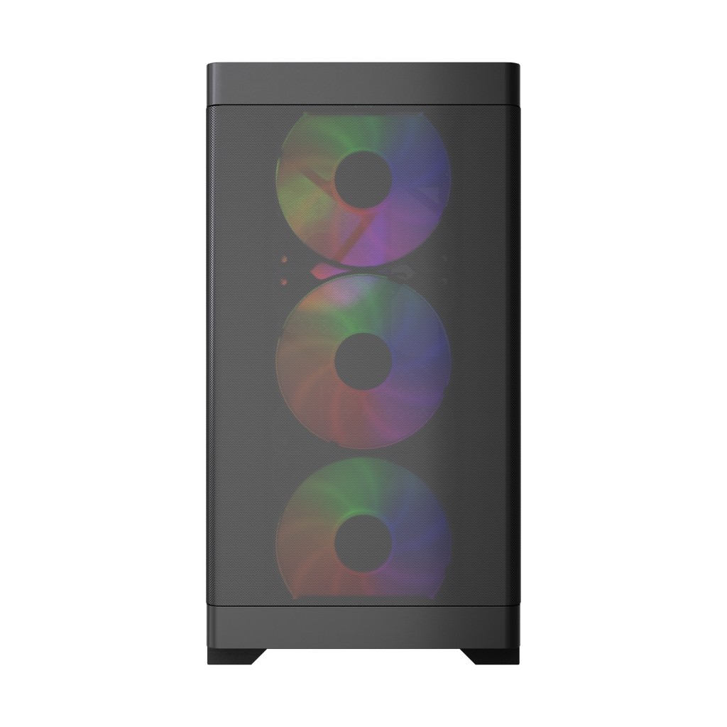 Размеры (ШхВхГ): 210x398x354mm, SPCC 0.4mm.CPU кулер 165мм (макс),VGA 285mm, PSU 160mm. Слоты: 3,5"х1, 2,5"х1, 4xPCI. Охлаждение: Front: 3х120мм FRGB fans (inc.). Top: 2х120мм, Rear: 1х120мм FRGB fan (inc.). I/O Panel: USB3.0 x 1 / USB2.0 x 2 , HD audio.