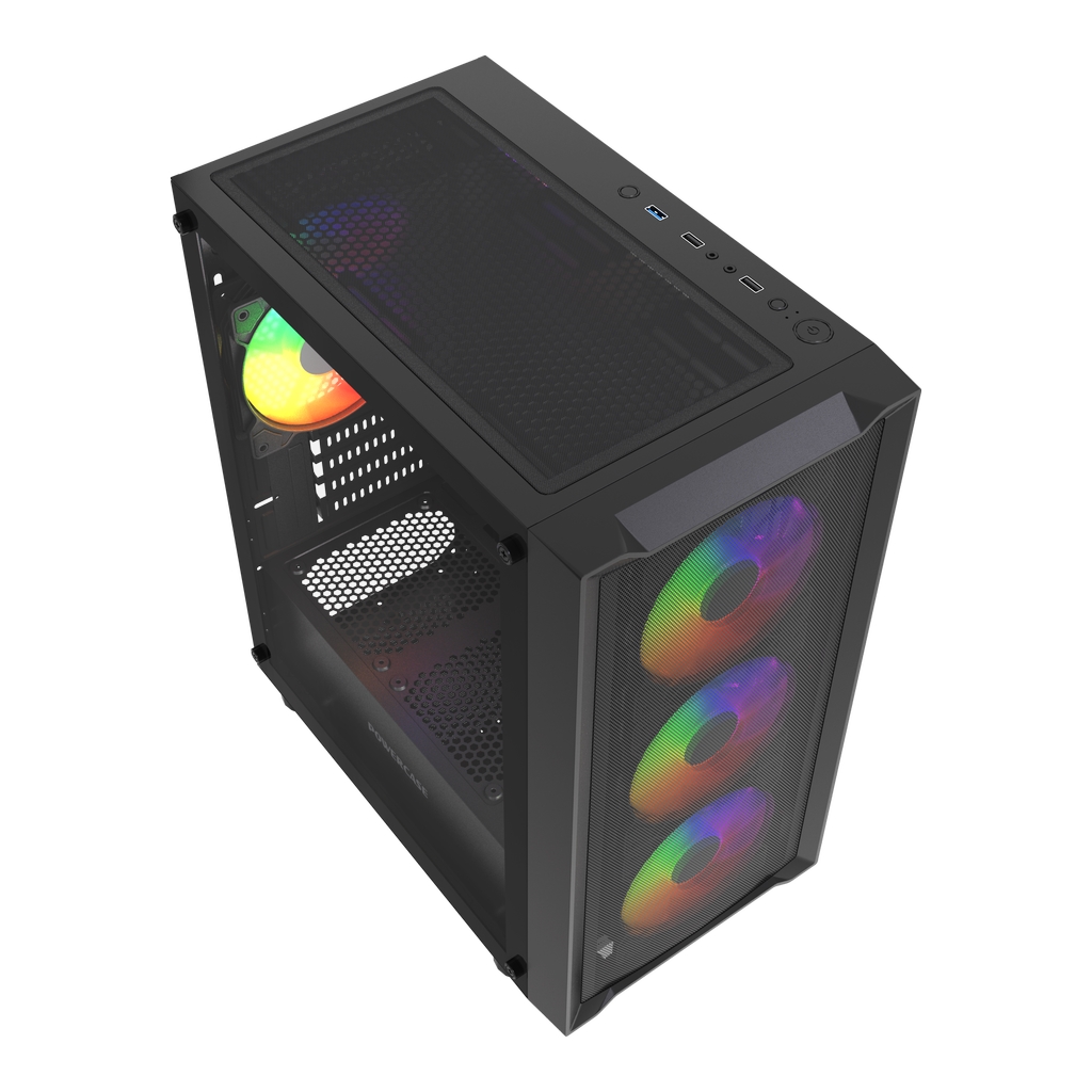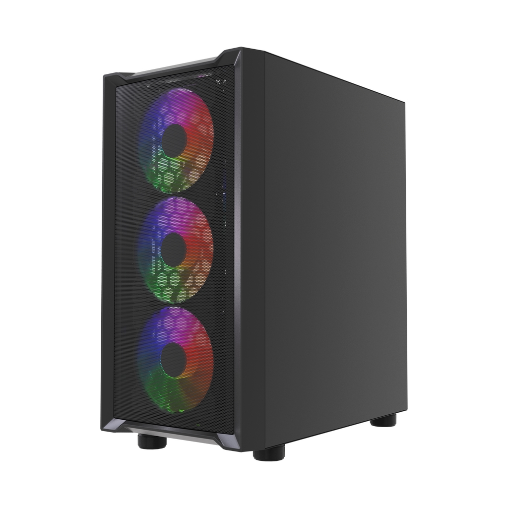 Размеры (ШхВхГ): 212x420x365mm, SPCC 0.4mm.CPU кулер 165мм (макс),VGA 300mm, PSU 170mm. Слоты: 3,5"х1, 2,5"х1, 4xPCI. Охлаждение: Front: 3х120мм ARGB fans (inc.). Top: 3х120мм, Rear: 1х120мм ARGB fan (inc.). I/O Panel: USB3.0 x 1 / USB2.0 x 2 , HD audio.