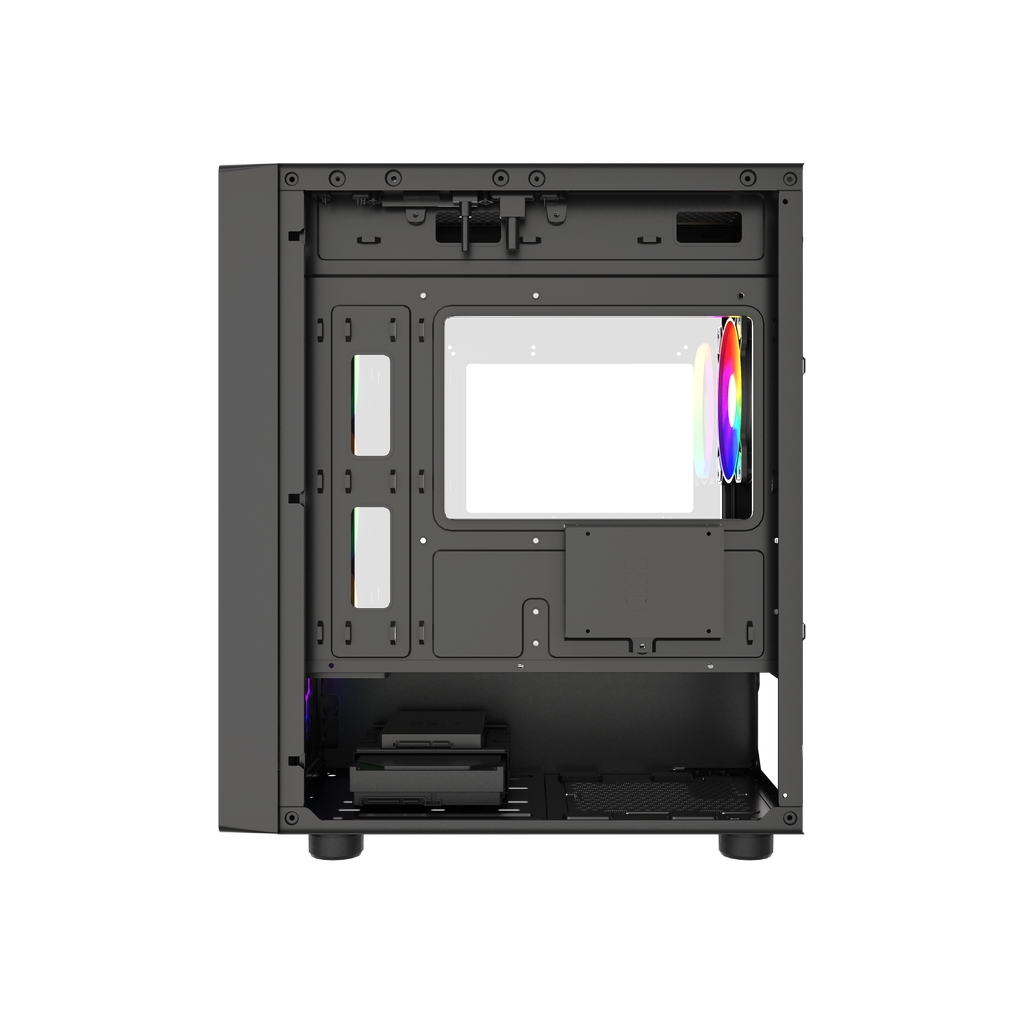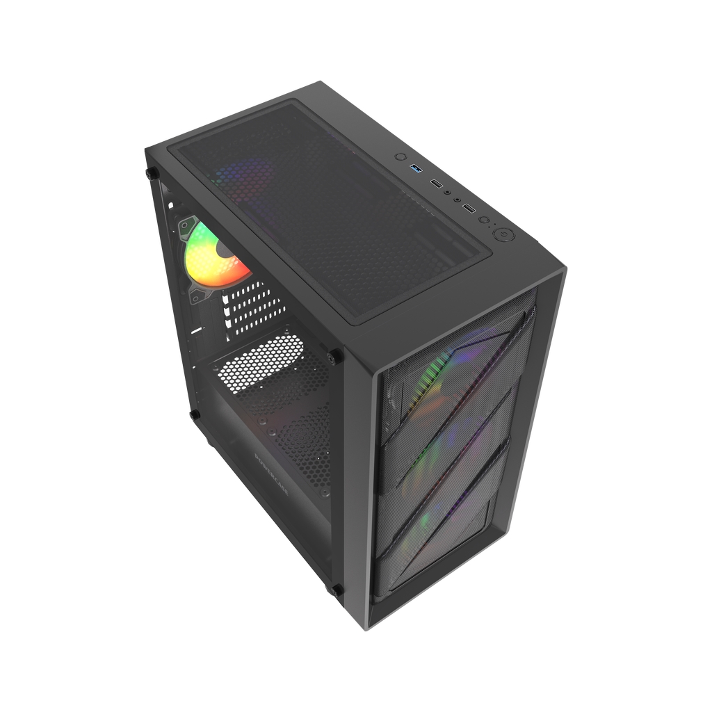 Размеры (ШхВхГ): 212x420x365mm, SPCC 0.4mm.CPU кулер 165мм (макс),VGA 300mm, PSU 170mm. Слоты: 3,5"х1, 2,5"х1, 4xPCI. Охлаждение: Front: 3х120мм FRGB fans (inc.). Top: 3х120мм, Rear: 1х120мм FRGB fan (inc.). I/O Panel: USB3.0 x 1 / USB2.0 x 2 , HD audio.