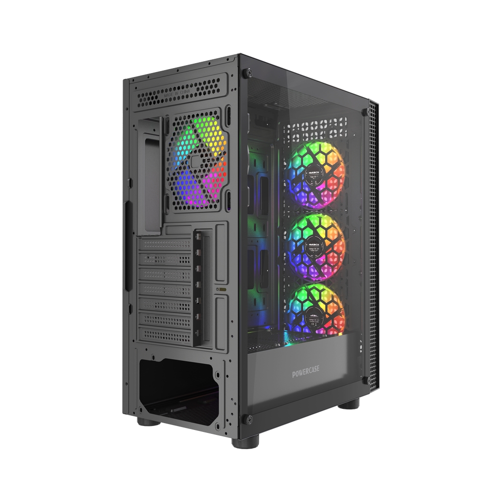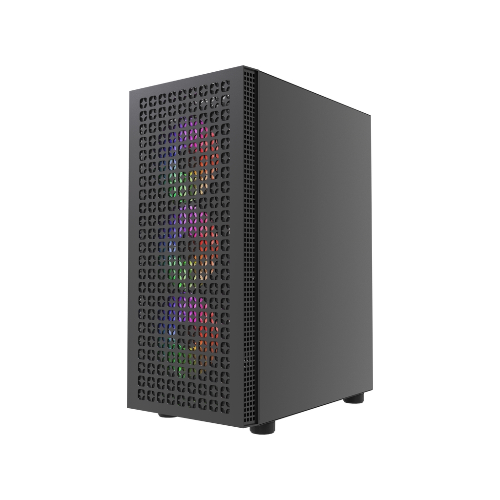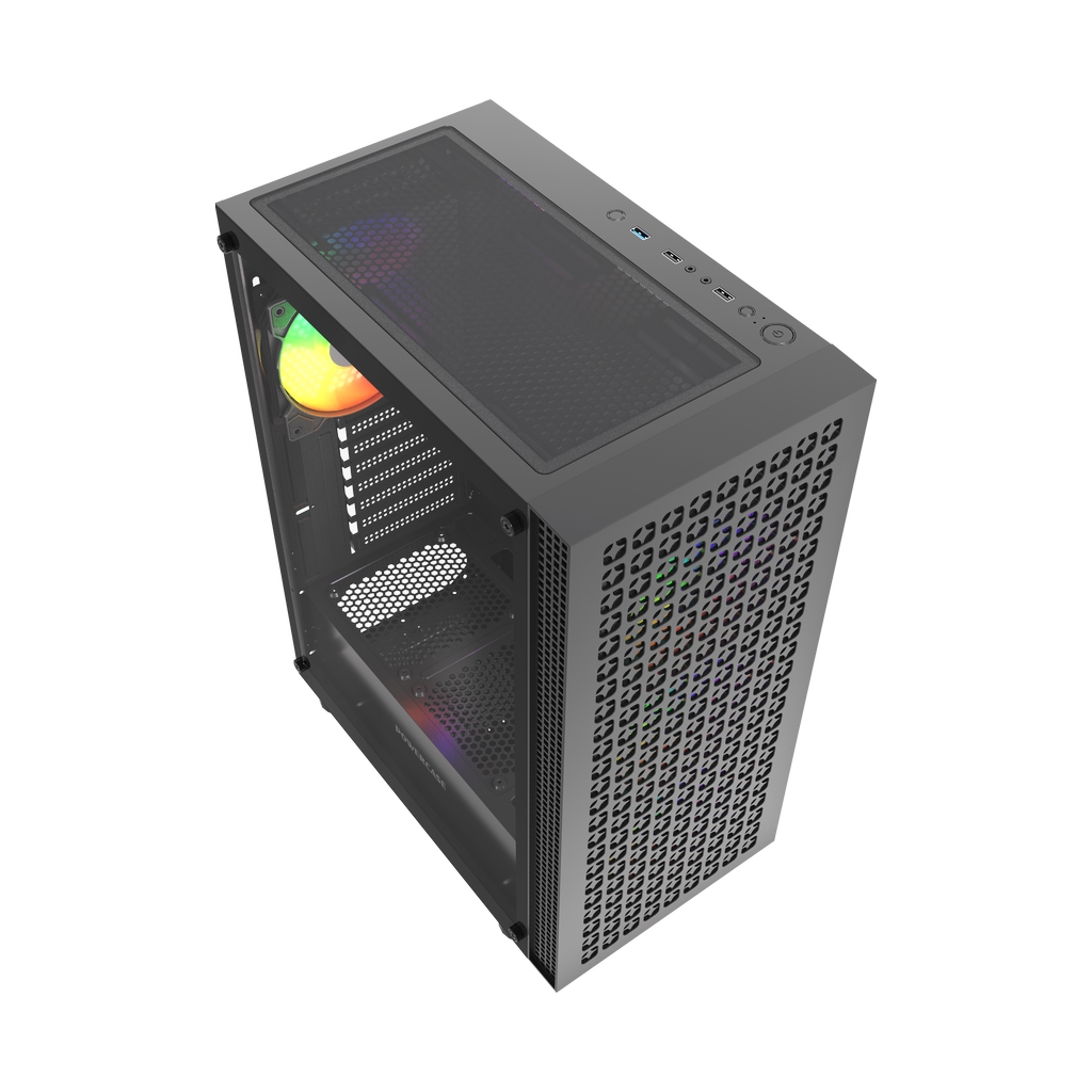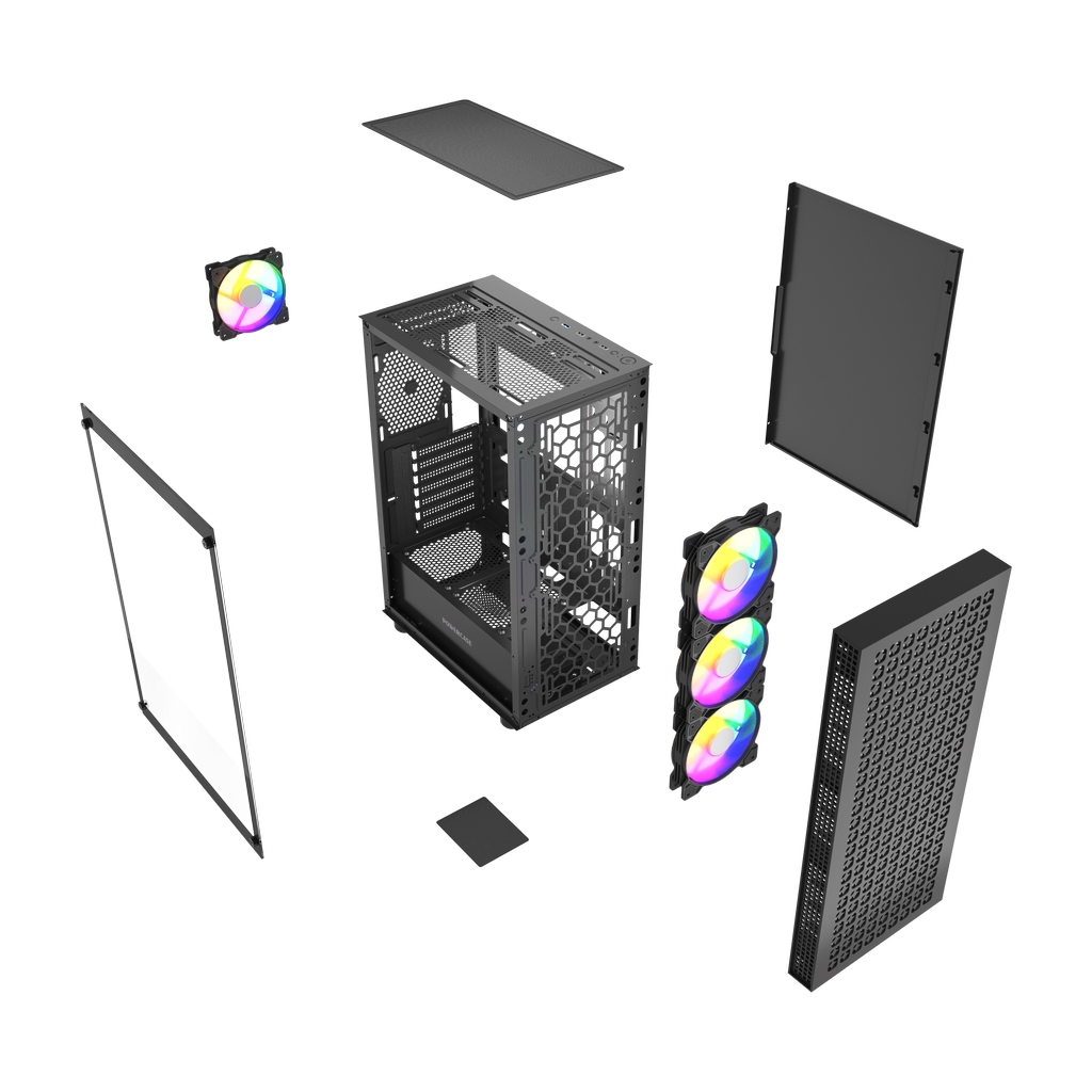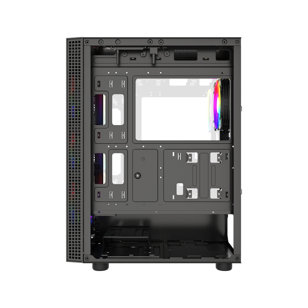 Размеры (ШхВхГ): 212x470x365mm, SPCC 0.45mm.CPU кулер 165мм (макс),VGA 300mm, PSU up to 170mm. Слоты: 3,5"х1, 2,5"х2, 7xPCI. Охлаждение: Front: 3х120мм ARGB fans (inc.). Rear:1х120мм ARGB fan (inc.). I/O Panel: USB3.0 x 1 / USB2.0 x 2 , HD audio.