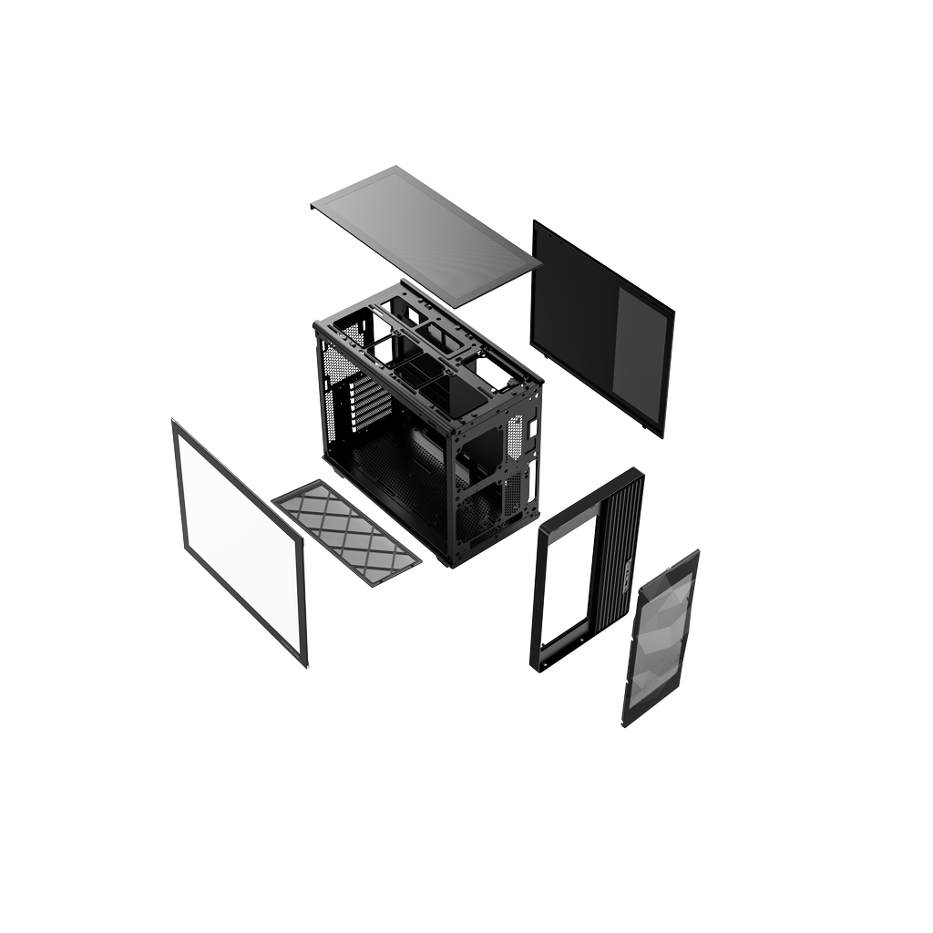 Размеры Ш*В*Г: 242x375x465мм, SPCC 0.8mm, VGA 375mm, CPU 180mm (Max.), Water cooler: 240/360mm on top, 3.5''HDD x 2, 2.5''SSD x 1, USB3.0 x 2+Type-C x 1, HD Audio