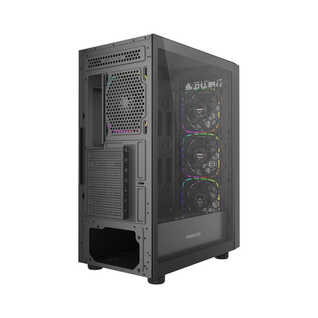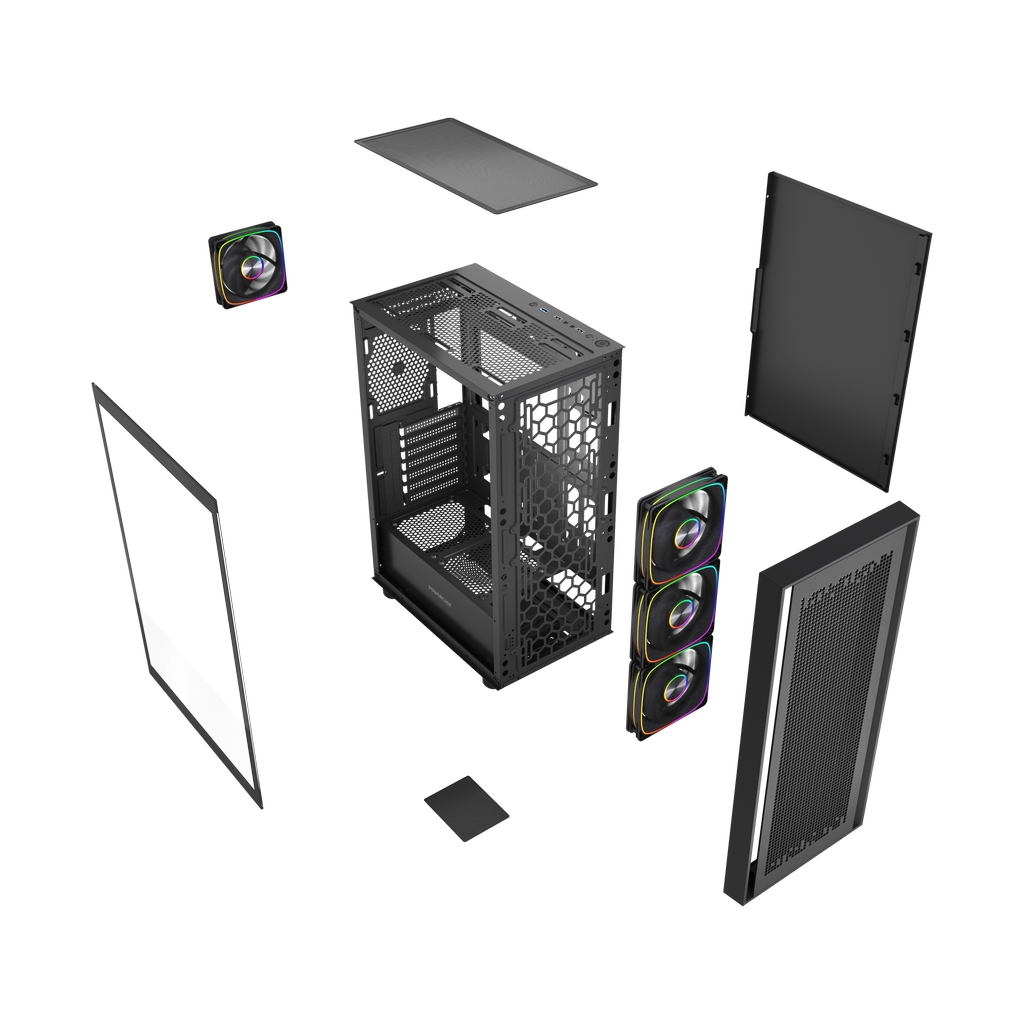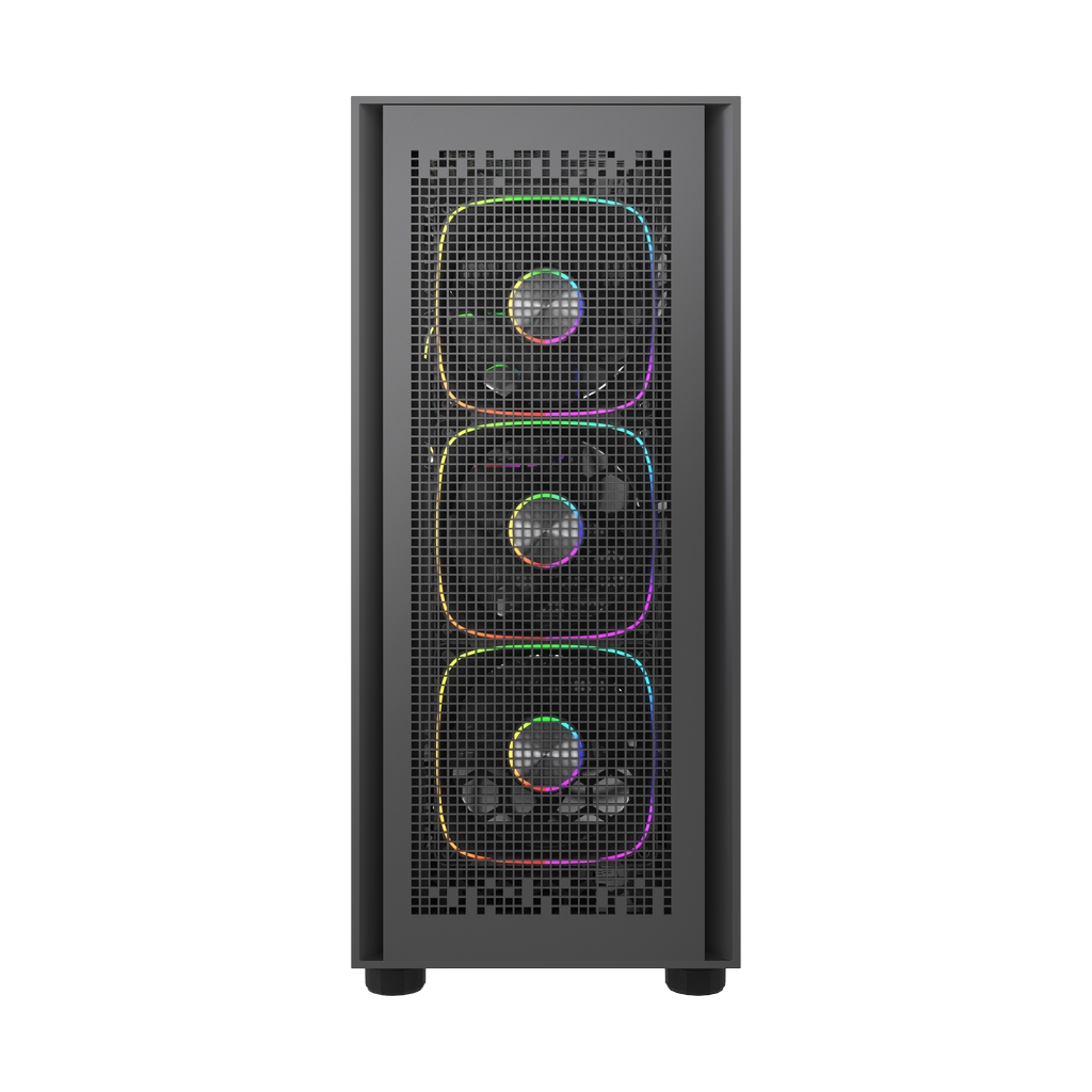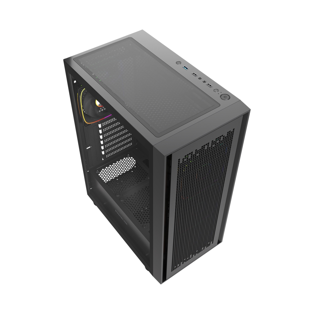 4*120mm ARGB Fans inc., VGA 330mm (with fans on front), CPU 168mm (Max.), Water cooler: 360mm front, 3.5''HDD x 2, 2.5''SSD x 1, USB3.0 x1+USB2.0 x2, HD Audio