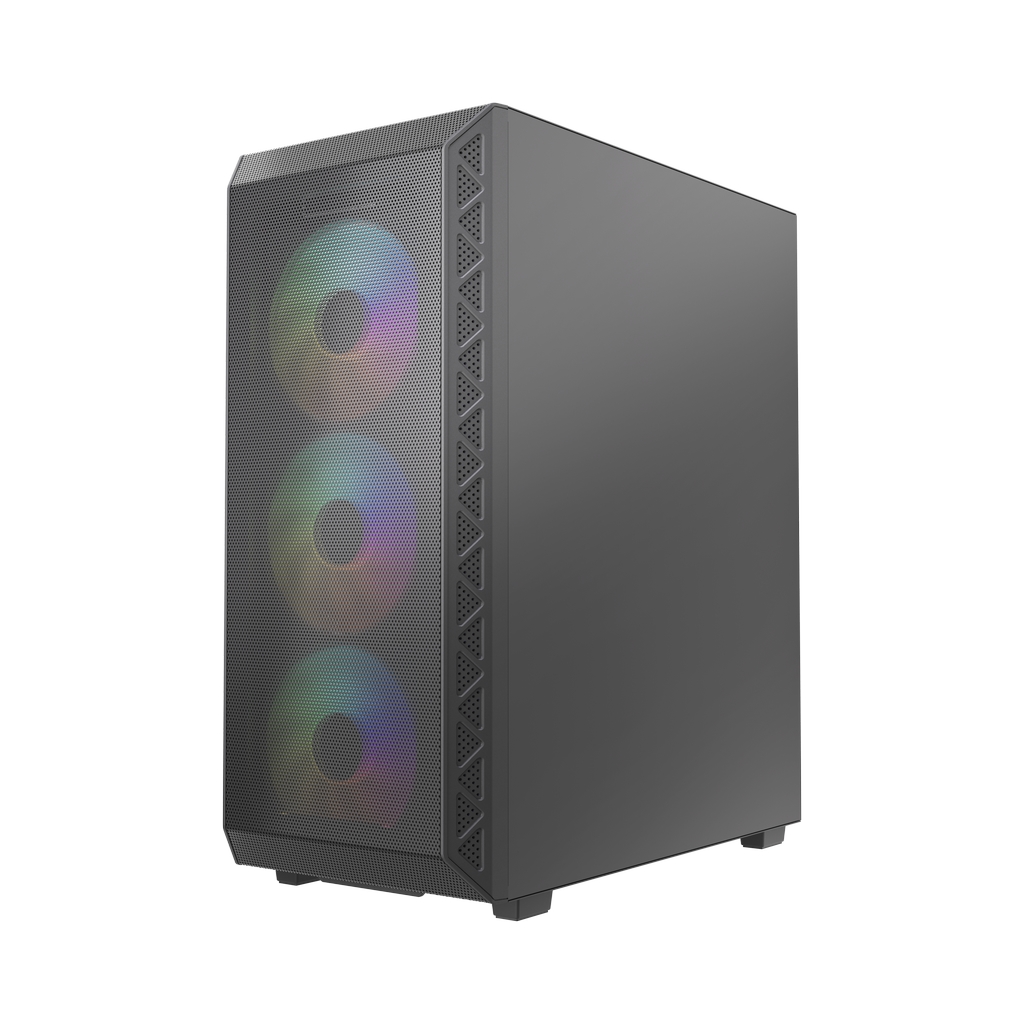 Размеры (ШхВхГ): 195x450x395mm, SPCC 0.45mm.CPU кулер 160мм (макс),VGA 310mm, PSU up to 200mm. Слоты: 3,5"х2, 2,5"х2, 7xPCI. Охлаждение: Front: 3х120мм ARGB PWM fans (inc.). Rear:1х120мм ARGB PWM fan (inc.). I/O Panel: USB3.0 x 1 / USB2.0 x 2 , HD audio.