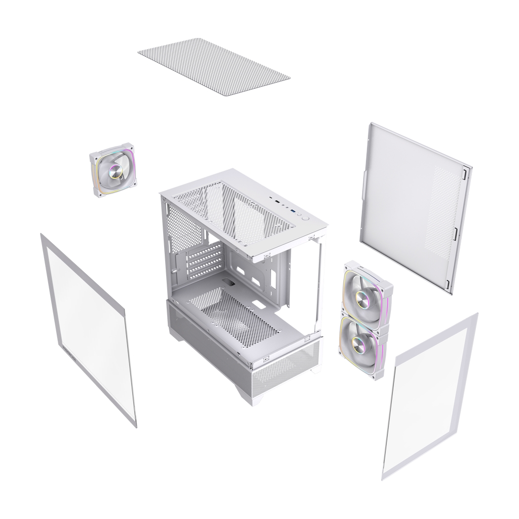 Размеры (ШхВхГ): 210x380x350mm, MB size WxH (220x244мм), CPU 160мм, VGA 345mm, PSU 160mm. Слоты: 3,5"х1, 2,5"х1, 4xPCI. Fans:Top side: 2х120мм, Rear: 1х120мм(inc.), Bottom: 2x120мм, MB tray: 2x120мм(inc.). I/O Panel: USB3.0 x 1; USB2.0 x 1; USB-C, Audio.