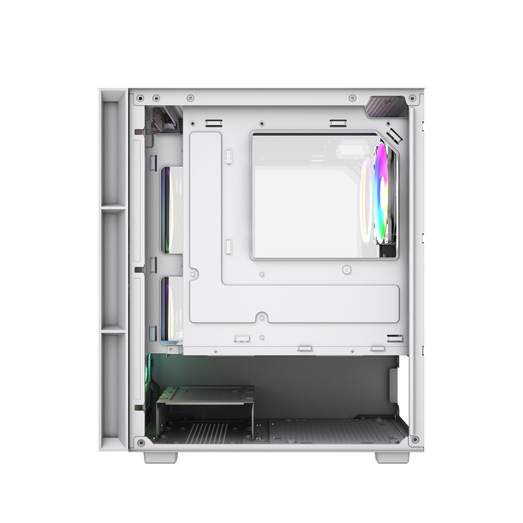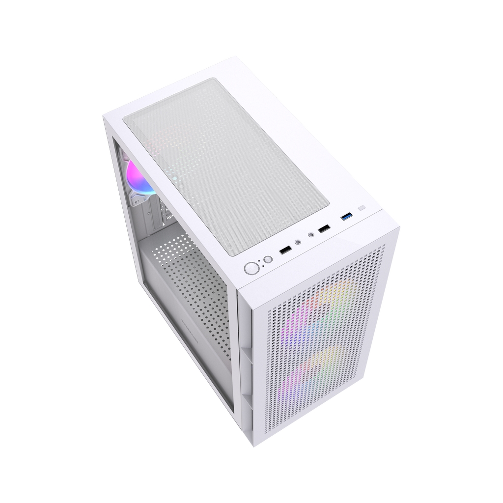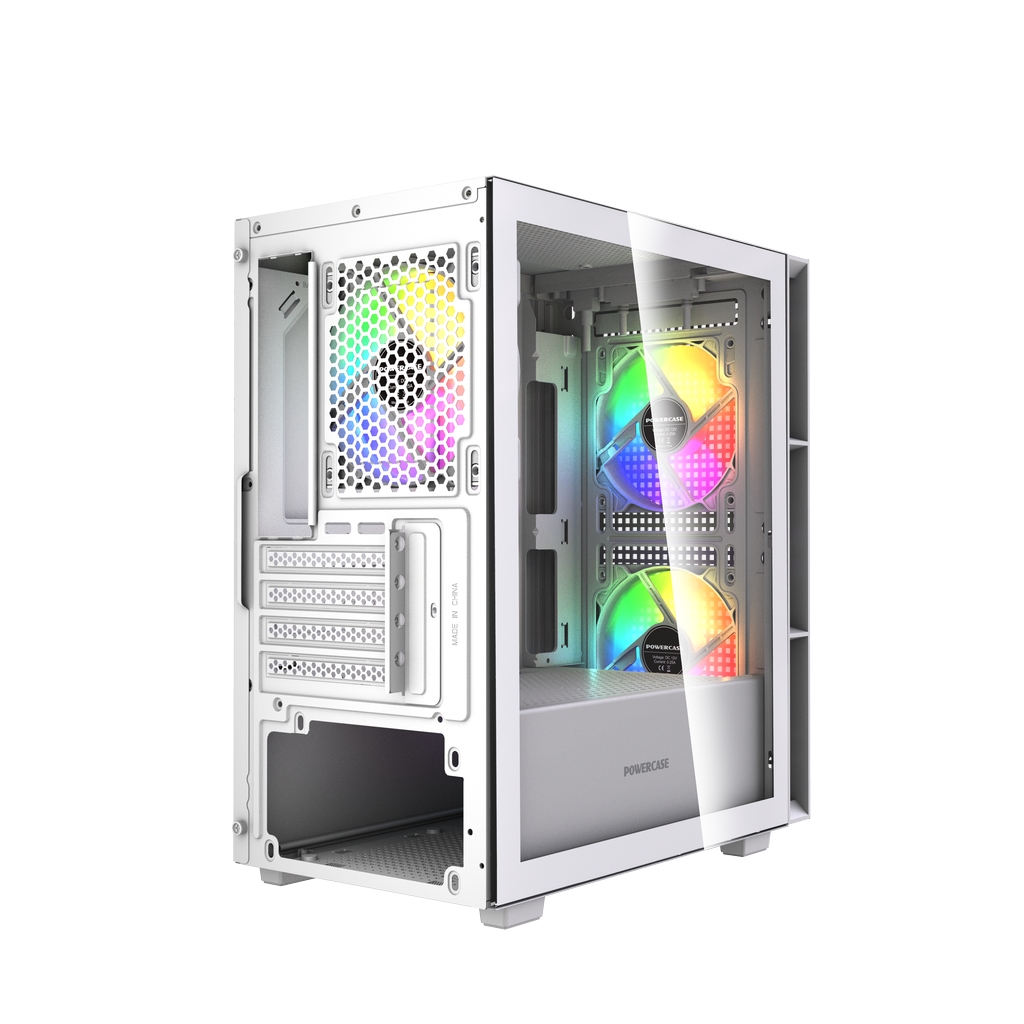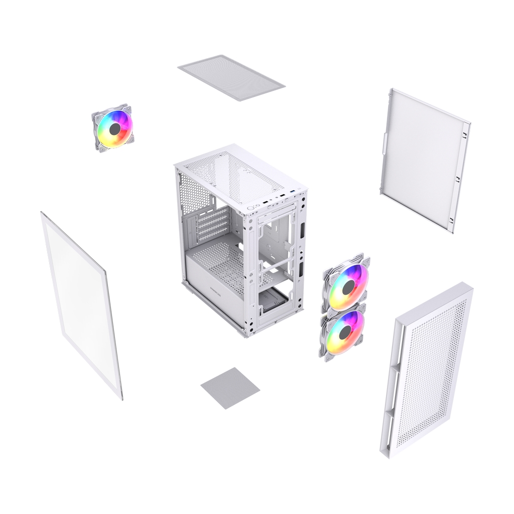 Размеры (ШхВхГ): 195x387x345mm,SPCC 0.45mm.CPU кулер 160мм (макс),VGA 300mm, PSU 160mm. Слоты: 3,5"х1, 2,5"х2, 4xPCI. Охлаждение: Front: 2х120мм ARGB fans (inc.). Top: 2х120мм, Rear: 1х120мм ARGB fan (inc.). I/O Panel: USB3.0 x 1 / USB2.0 x 2 , HD audio.