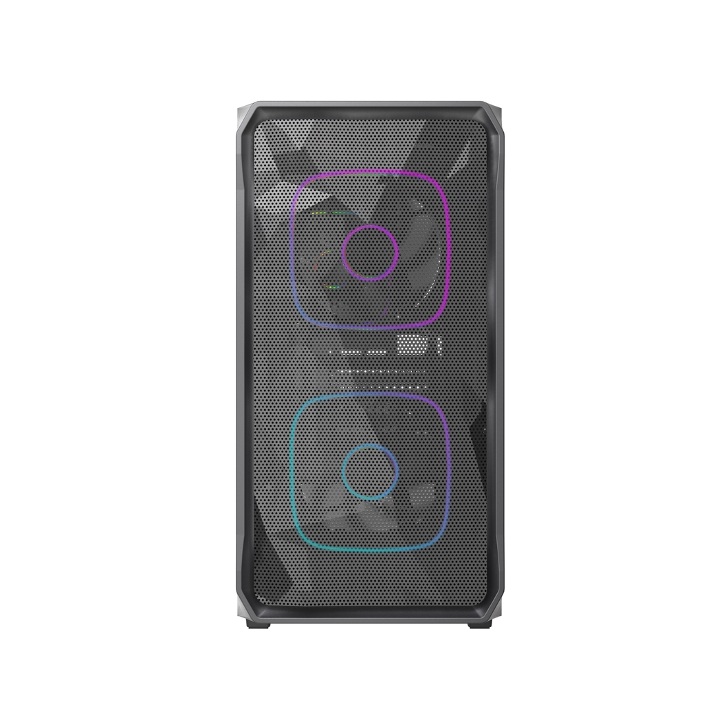 Размеры (ШхВхГ): 195x387x345mm,SPCC 0.45mm.CPU кулер 160мм (макс),VGA 300mm, PSU 160mm. Слоты: 3,5"х1, 2,5"х2, 4xPCI. Охлаждение: Front: 2х120мм ARGB fans (inc.). Top: 2х120мм, Rear: 1х120мм ARGB fan (inc.). I/O Panel: USB3.0 x 1 / USB2.0 x 2 , HD audio.