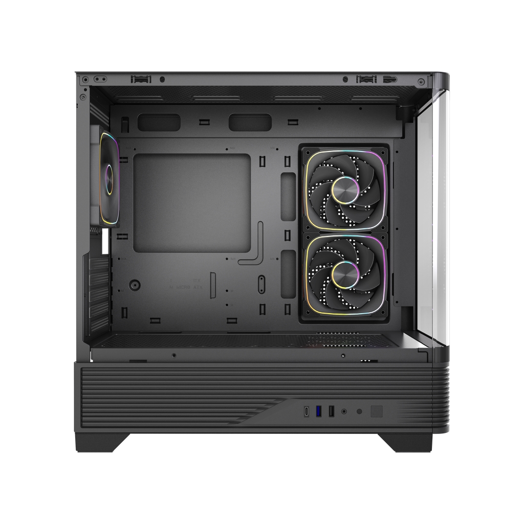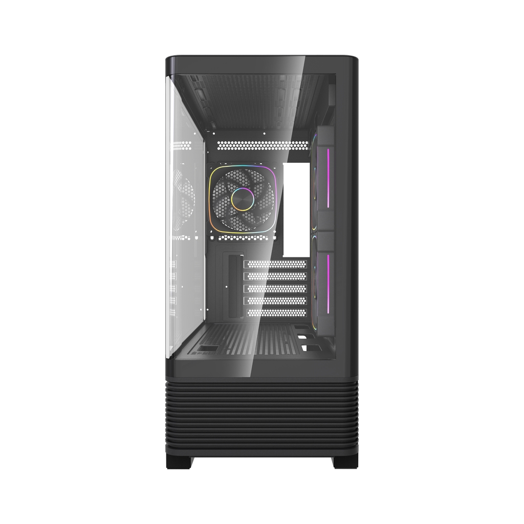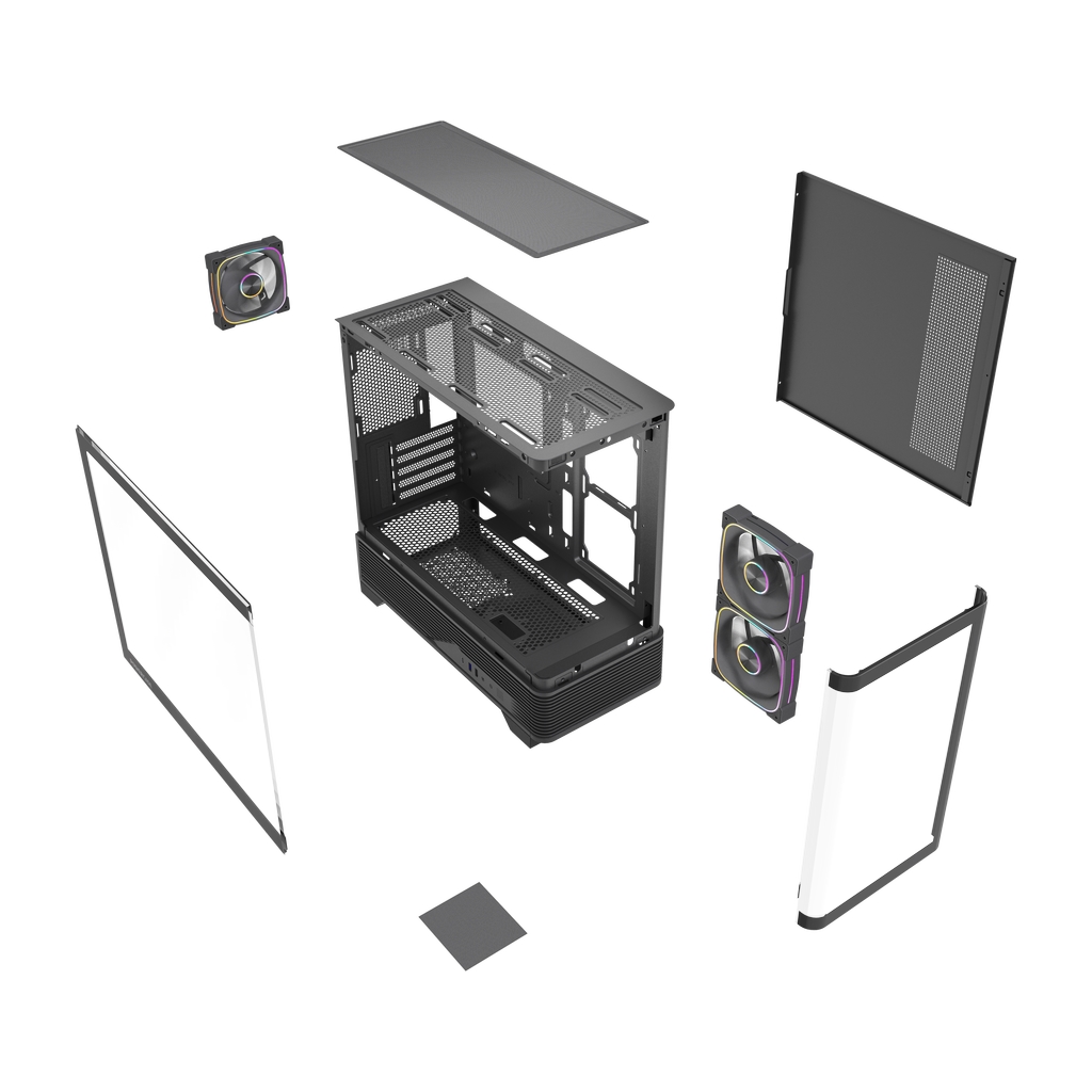 Размеры (ШхВхГ): 210x435x445mm, SPCC 0.6 mm.CPU кулер 165мм, VGA 410mm. Слоты: 2,5"х2, 5xPCI. Охлаждение:Top side: 3х120, Rear: 1х120мм(inc.), Bottom: 3x120мм, MB tray: 2x120мм(inc.). I/O Panel: USB3.0 x 1, USB 2.0 x 1, Type-C
