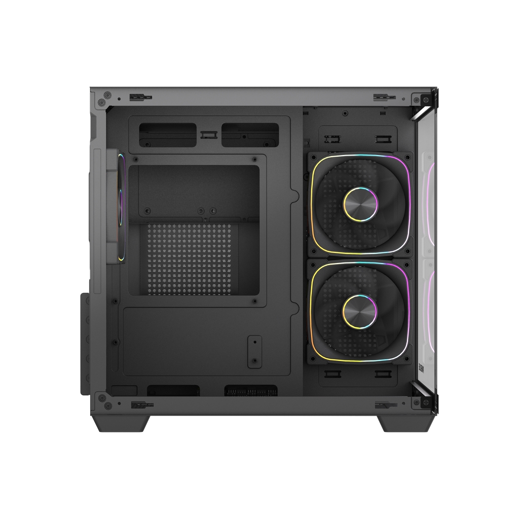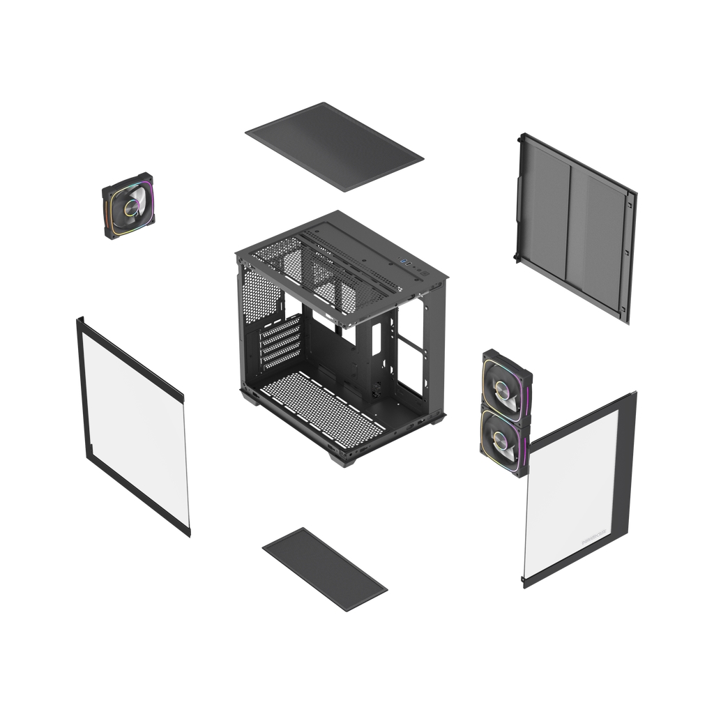Размеры (ШхВхГ):275x354x335mm, MB size WxH (220x244мм), CPU кулер 160мм, VGA 340mm. Слоты: 3,5"х1, 2,5"х2, 5xPCI. Охлаждение:Top side: 2х120/140мм, Rear: 1х120мм(inc.), Bottom: 2x120мм, MB tray: 2x120мм(inc.). I/O Panel: USB3.0 x 1, USB 2.0 x 1, Type-C