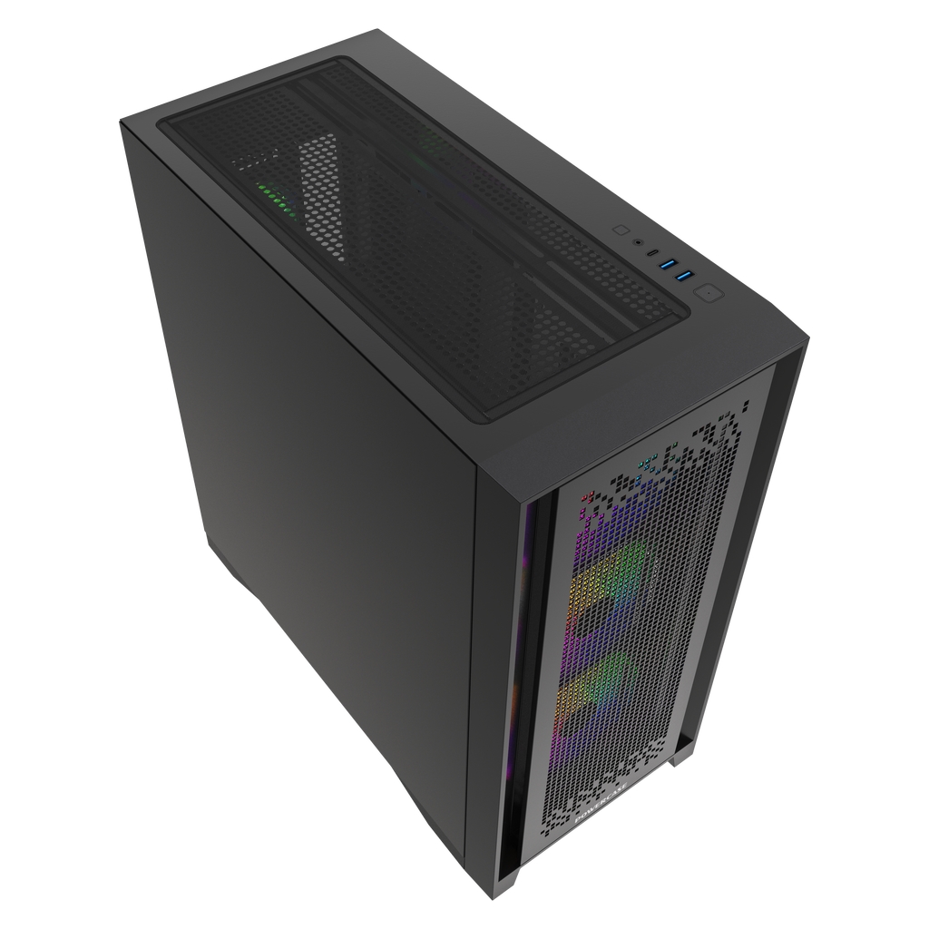 Размеры Ш*В*Г: 235x502x475мм, Нейлоновые фильтры, Сталь 0.6mm, VGA 395mm, CPU 175mm (Max.), 4x 140mm ARGB PWM fans. AIO: 360mm верх / 420мм перед, 3.5''HDD x 2, 2.5''SSD x 3, USB3.0 x 2+Type-C x 1, HD Audio