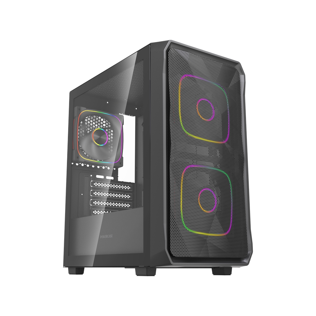 Размеры (ШхВхГ): 195x387x345mm,SPCC 0.45mm.CPU кулер 160мм (макс),VGA 300mm, PSU 160mm. Слоты: 3,5"х1, 2,5"х2, 4xPCI. Охлаждение: Front: 2х120мм ARGB fans (inc.). Top: 2х120мм, Rear: 1х120мм ARGB fan (inc.). I/O Panel: USB3.0 x 1 / USB2.0 x 2 , HD audio.