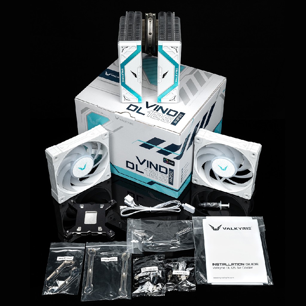 Кулер Valkyrie DL125 Vind White / 6HPx6mm, 230W TDP, 2x120mm ARGB fans, 800-1850RPM, 80CFM, 29dBA / HW NA125-W