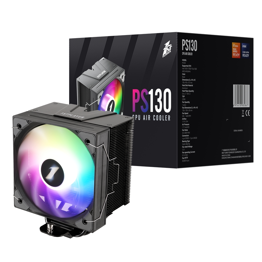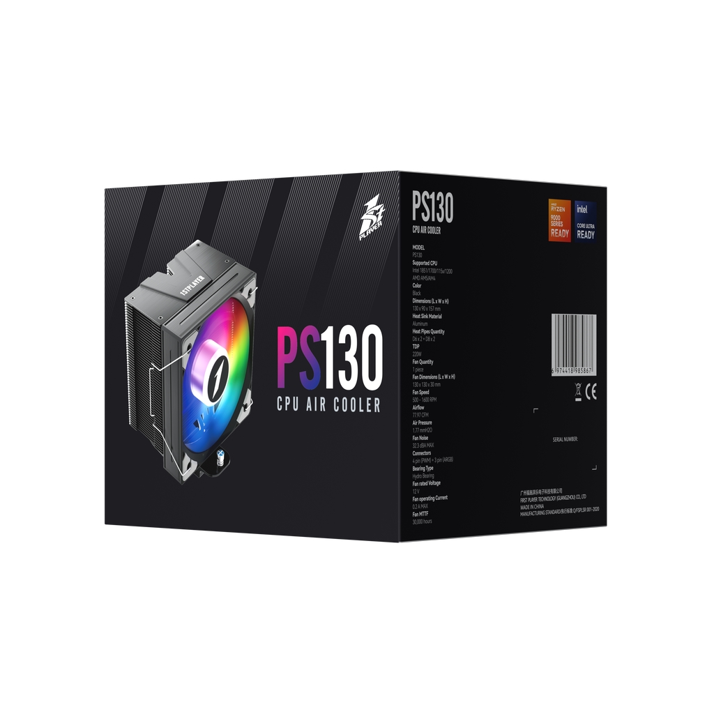 Кулер 1STPLAYER PS130 Black / 2HPx6mm + 2HPx8mm, 220W TDP, single tower, 1x130mm ARGB fan, 500-1600 RPM, 78 CFM, 32.3 dBA / PS130-BK