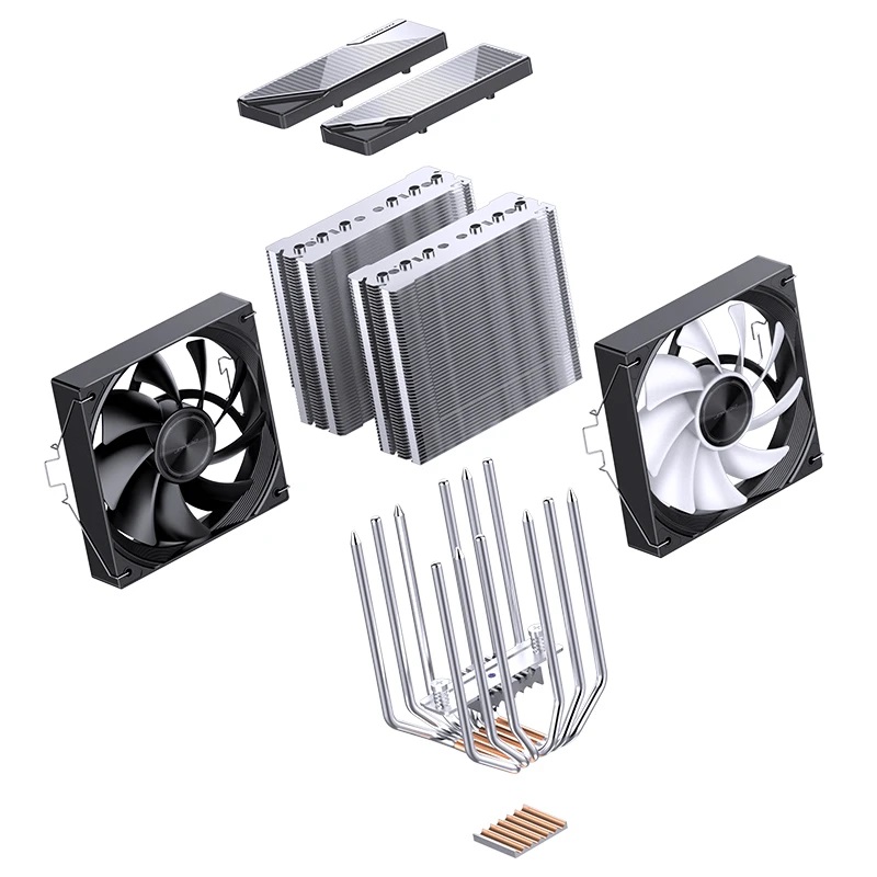 габариты 120mm(L)*135mm(W)*159mm(H), Fan1: 3.12W (Fan)+1.5W (Led), 800-1800 RPM, <69.61CFM, <32.6dBA, Pressure <1.79mmH2O, 120x25mm, 4-pin+3-pin; Fan2: 1.92W, 600-1500 RPM, <53.53CFM, <30.2dBA, Pressure <1.32mmH2O, 120x25, 4-pin; 1295g