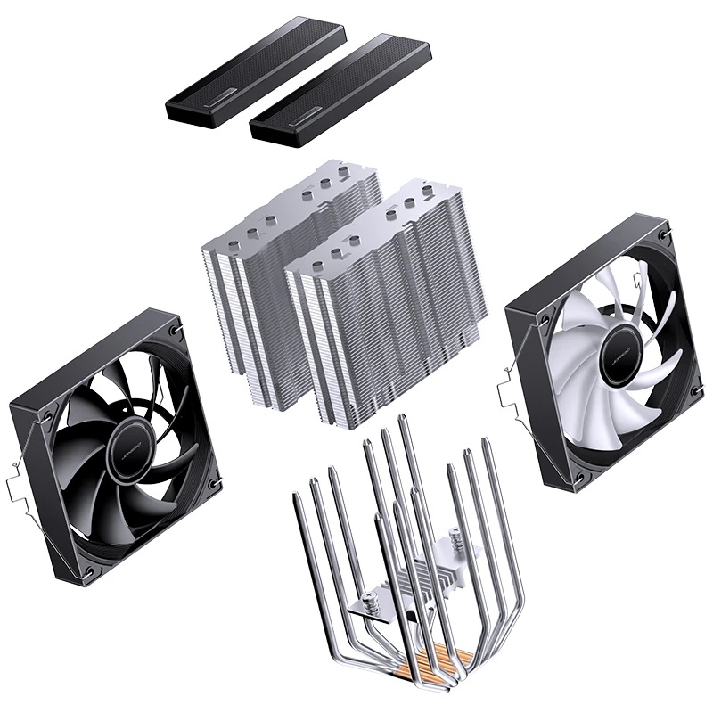 габариты 120mm(L)*135mm(W)*153mm(H), Fan1: 3.24W (Fan)+1.5W (Led), 800-1800 RPM, <77.07CFM, <35.4dBA, Pressure <1.86mmH2O, 120x25mm, 4-pin+3-pin; Fan2: 2.28W, 300-1800 RPM, <80.41CFM, <36dBA, Pressure <1.32mmH2O, 120x25, 4-pin; 1295g