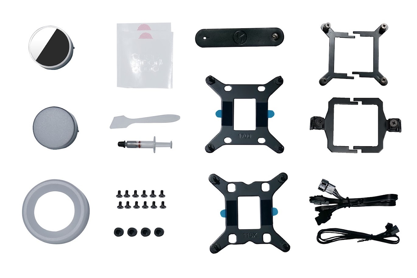 Радиатор: 396х130х32mm, Intel: LGA 1700 / 1200 / 115x AMD: AM5 / AM4. Вентилятор: 3х 120mm PWM Fans, шум: 38.1dBA (Max/), 3х 109.6CFM (MAX), FDB, 200-3000 об/мин. Помпа: размеры: 74x74х79mm, 4200±10%RPM, Подсветка: 3pin 5V ARGB.