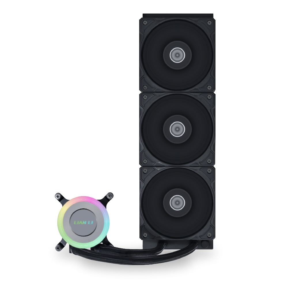 Радиатор: 397х120х27mm, Intel: LGA 1700 / 1851 AMD: AM5 / AM4. Вентилятор: 3х 120mm PWM Fans, шум: 29.8dBA, 3х 73.14CFM (MAX), FDB, 200-2500 об/мин. Помпа: размеры: 74x74х67mm, 3800±10%RPM, Подсветка: 3pin 5V ARGB.