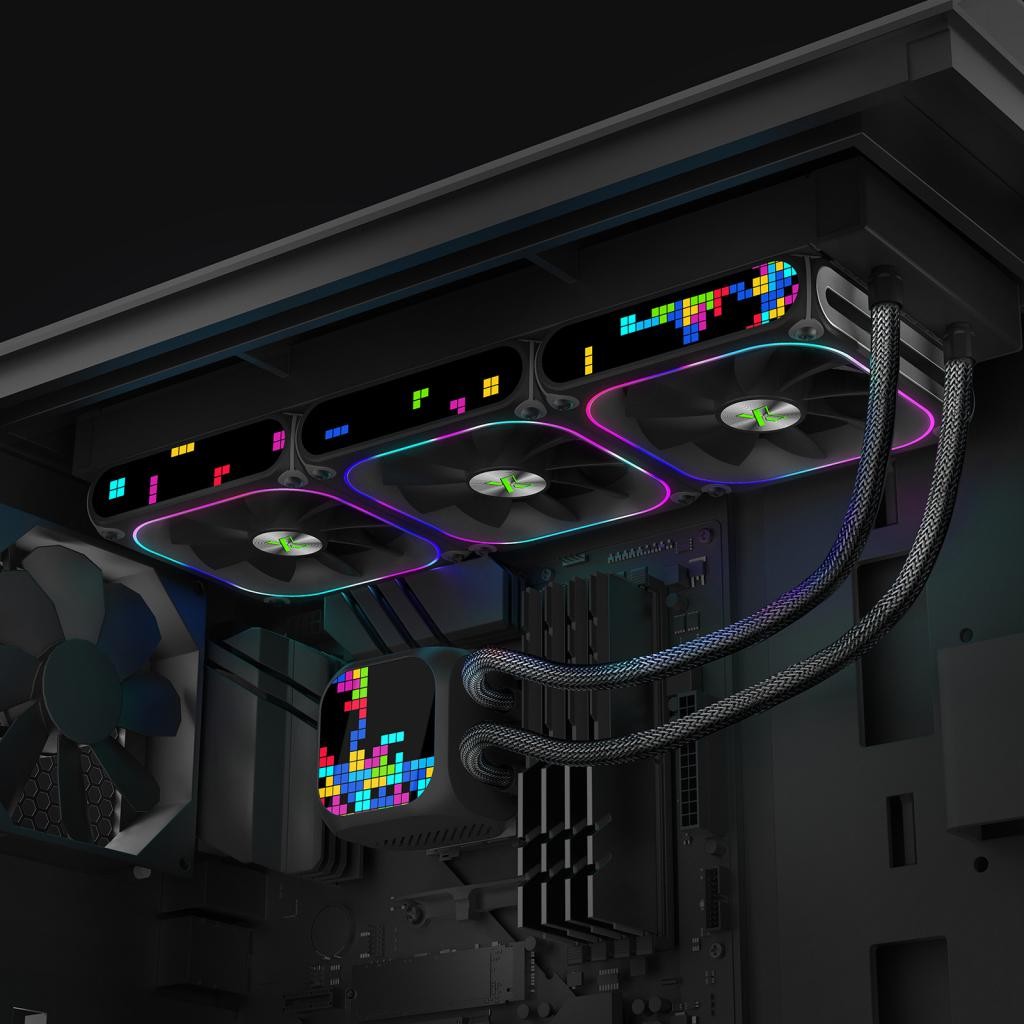 Размеры радиатора 394(L)*120(W)*27(H)mm, материал - алюминий, 600-2000±10%RPM, Размер помпы 70мм x 70мм x 65мм, длина трубок 400mm