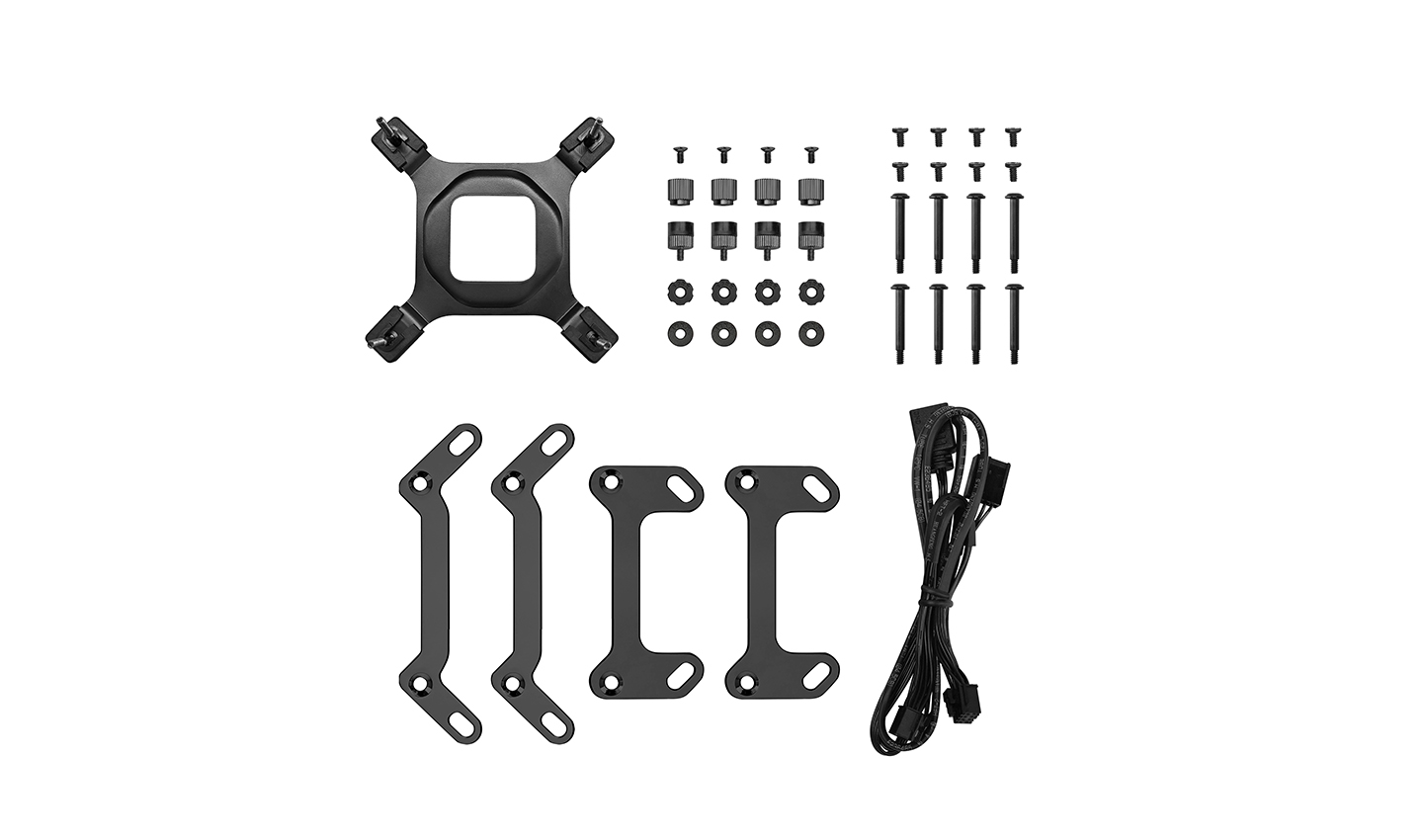 2.64W Fan, 4.2W Pump, радиатор: 402X120X27mm, помпа: 93х77х66mm, Fan: 600~2400±10%RPM, Pump: 3400±10%RPM, 3*Fan 120x120x25mm , поток 72.04CFM (MAX) , макс.шум 38.71dB(A), 3-pin(+5V), 1847g