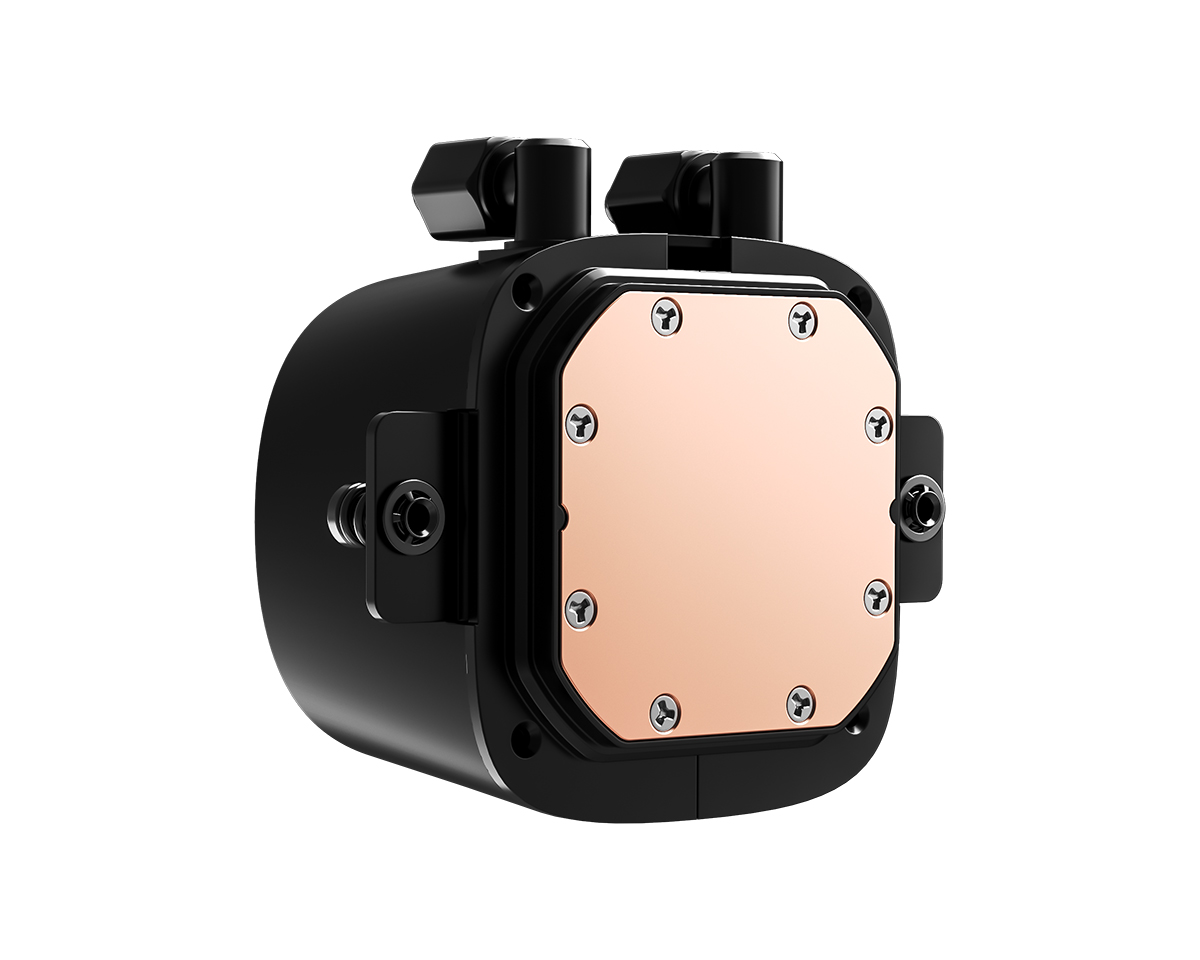 2.64W, 0~2450RPM, 3 Fans (AP-120-K) 120x28mm , макс.поток 88.75CFM(1 Fan), шум Fun:<34.3dB(A), давление 4,35mmH2O, помпа 73x69x57mm, Pump:25dB(A), Pump speed 2900RPM, Pump current 0.45A, 4Pin PWM+3Pin ARGB