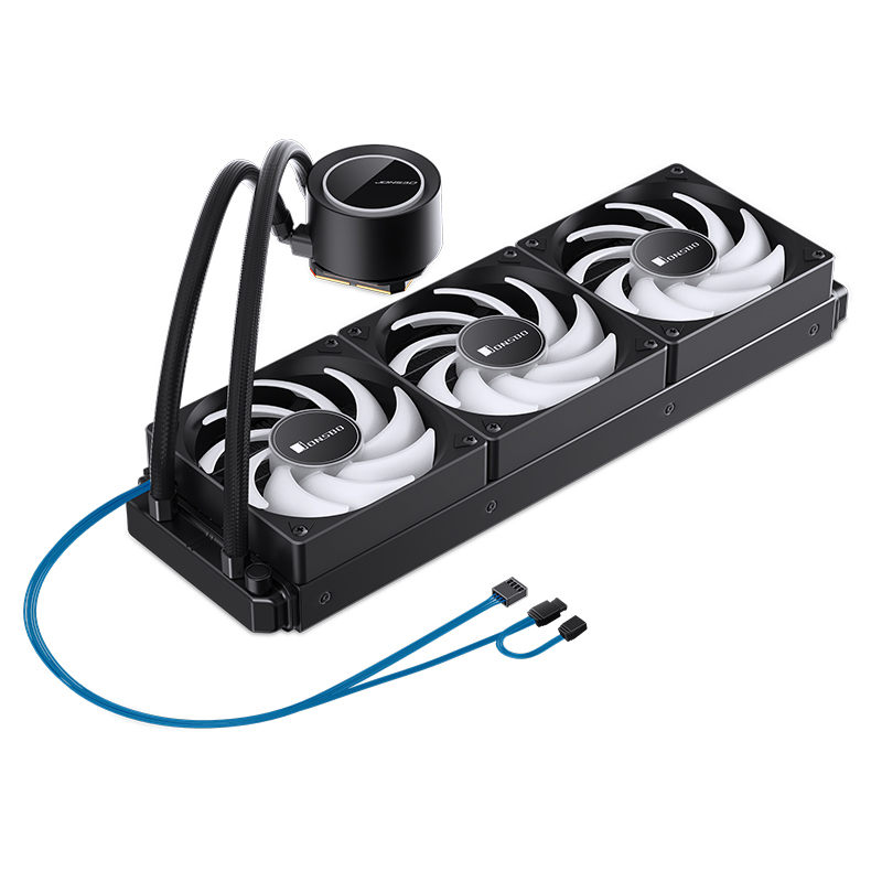 3.6W, 900~1800RPM, 3 * ARGB Fan 120x120x25mm , макс.поток 29.22-66.19CFM(1 Fan), шум Fun: 22.9-35.4dB(A), Pump:74mmx89.2mmx51.8mm, Radiator: 394x120x27mm, Hydraulic Bearing